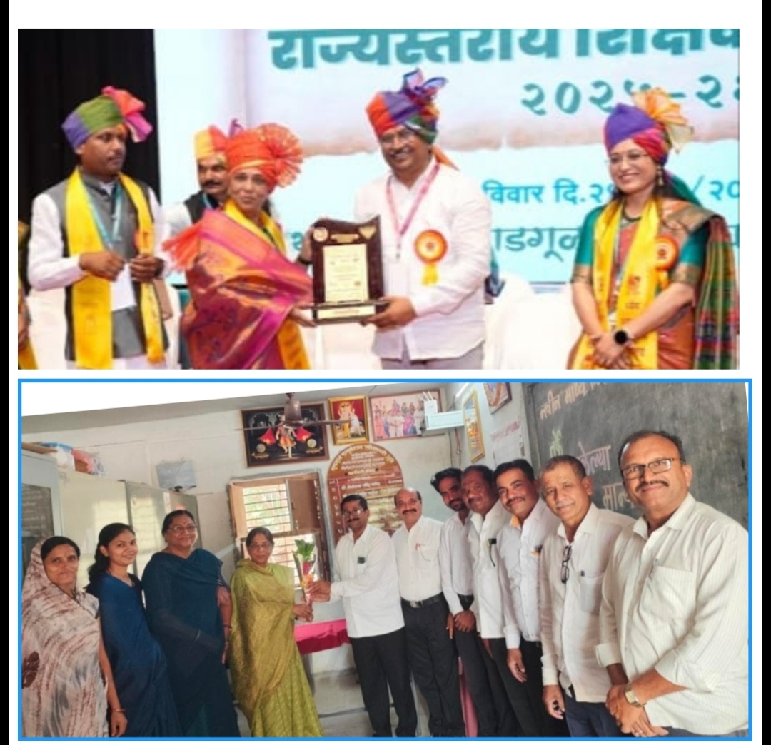 राज्यस्तरीय शिक्षक पुरस्काराने श्रीमती शैला बैसाणे सन्मानित.. शाळेतील कर्मचाऱ्यांनी केला सत्कार