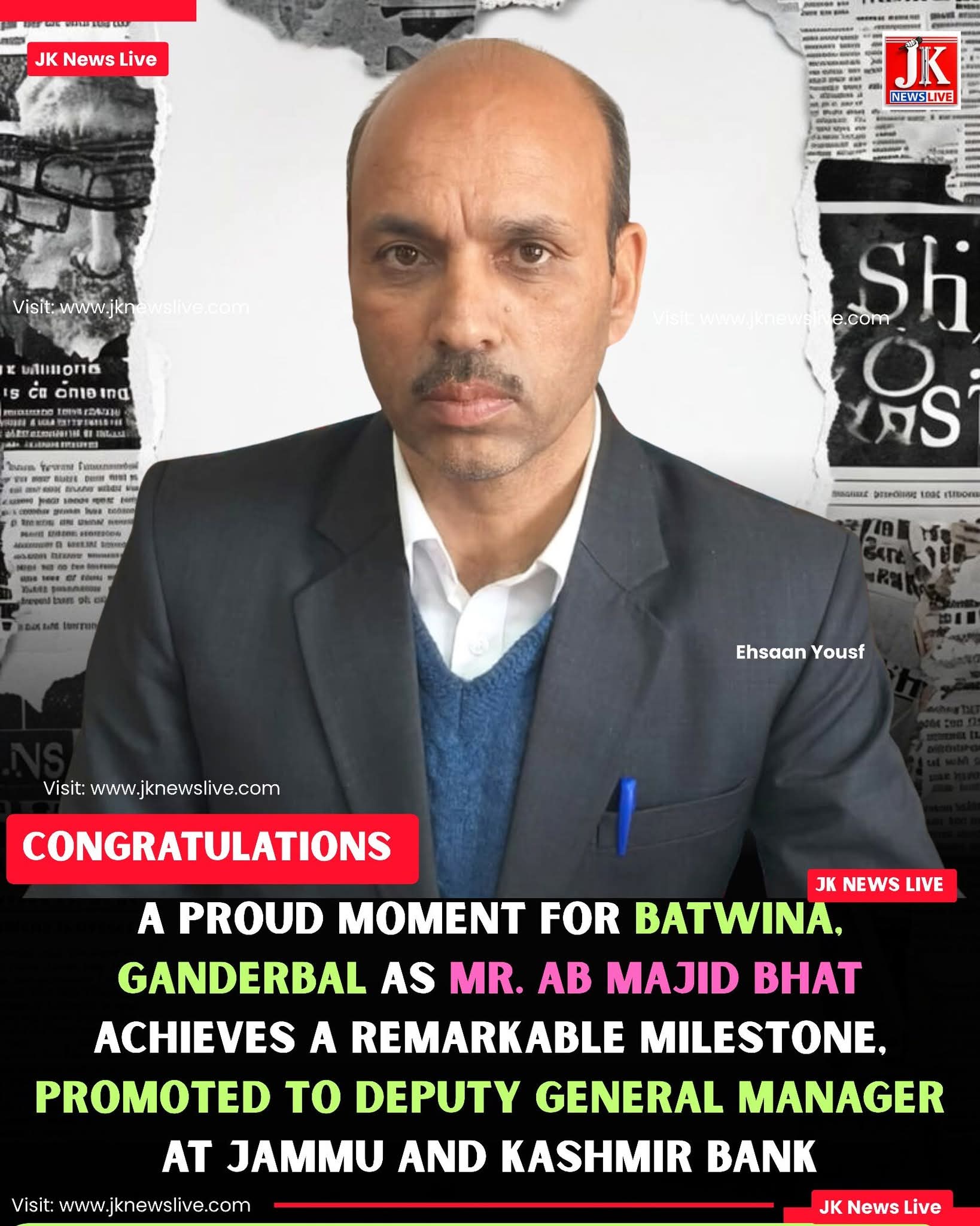 A proud moment for Batwina, Ganderbal as Mr. Ab Majid Bhat achieves a remarkable milestone, promoted to Deputy General Manager at Jammu and Kashmir Bank
