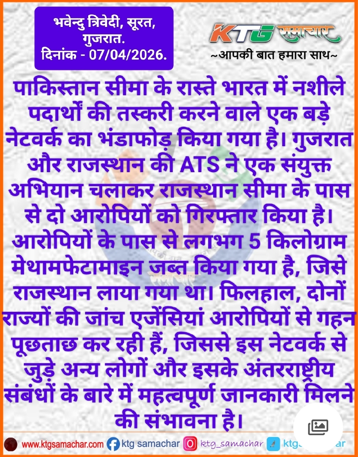 गुजरात और राजस्थान एटीएस ने पाकिस्तान सीमा के रास्ते भारत में नशीले पदार्थ की तस्करी का भंडाफोड़ किया है।