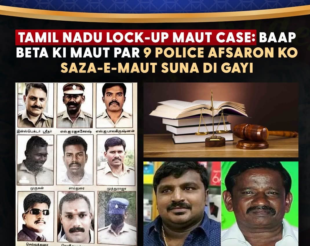 Tamil Nadu ke zila Thoothukudi ke Sathankulam se taalluq rakhne wale baap beta ki lock-up me maut ke case me Madurai court ne ek aham aur sakht faisla sunaya hai. Court ne Tamil Nadu Police ke 9 mulazimeen ko saza-e-maut di hai. Yeh waqia 19 June 2020 ko lockdown ke dauran pesh aya tha jab mobile shop zyada der tak khuli rakhne ke ilzam me shop owner Jeyaraj aur unke bete ko police ne giraftar kiya tha. Is case ne us waqt poore mulk me gusse aur behas ko janam diya tha.