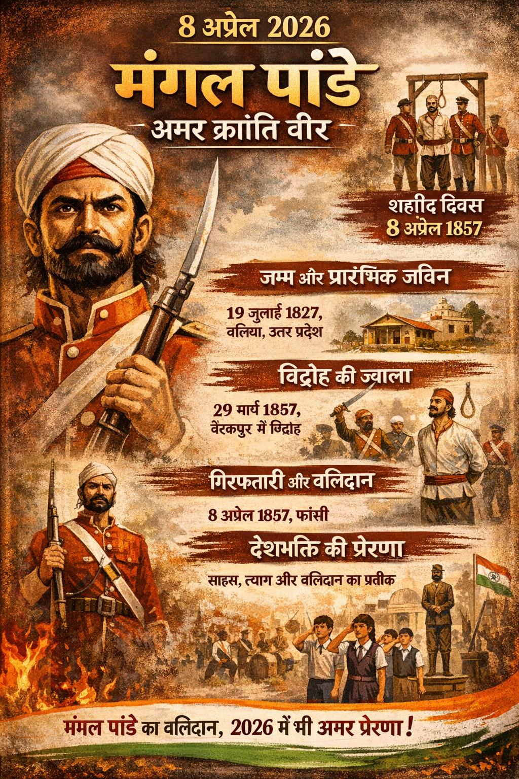 рднрд╛рд░рддреАрдп рд╕реНрд╡рддрдВрддреНрд░рддрд╛ рд╕рдВрдЧреНрд░рд╛рдо рдХреЗ рдЗрддрд┐рд╣рд╛рд╕ рдореЗрдВ рдордВрдЧрд▓ рдкрд╛рдВрдбреЗ рдХрд╛ рдирд╛рдо рдПрдХ рдРрд╕реЗ рд╡реАрд░ рд╕реИрдирд┐рдХ рдХреЗ рд░реВрдк рдореЗрдВ рд▓рд┐рдпрд╛ рдЬрд╛рддрд╛ рд╣реИ, рдЬрд┐рдиреНрд╣реЛрдВрдиреЗ рдЕрдВрдЧреНрд░реЗрдЬреА рд╢рд╛рд╕рди рдХреЗ рдЦрд┐рд▓рд╛рдл рд╕рдмрд╕реЗ рдкрд╣рд▓реЗ рд╡рд┐рджреНрд░реЛрд╣ рдХрд╛ рдмрд┐рдЧреБрд▓ рдлреВрдВрдХрд╛ред рдЕрдкреНрд░реИрд▓ 2026 рдореЗрдВ рдЙрдирдХрд╛ рдЬреАрд╡рди рдФрд░ рдмрд▓рд┐рджрд╛рди рдлрд┐рд░ рд╕реЗ рджреЗрд╢рд╡рд╛рд╕рд┐рдпреЛрдВ рдХреЛ рдкреНрд░реЗрд░рд┐рдд рдХрд░ рд░рд╣рд╛ рд╣реИред