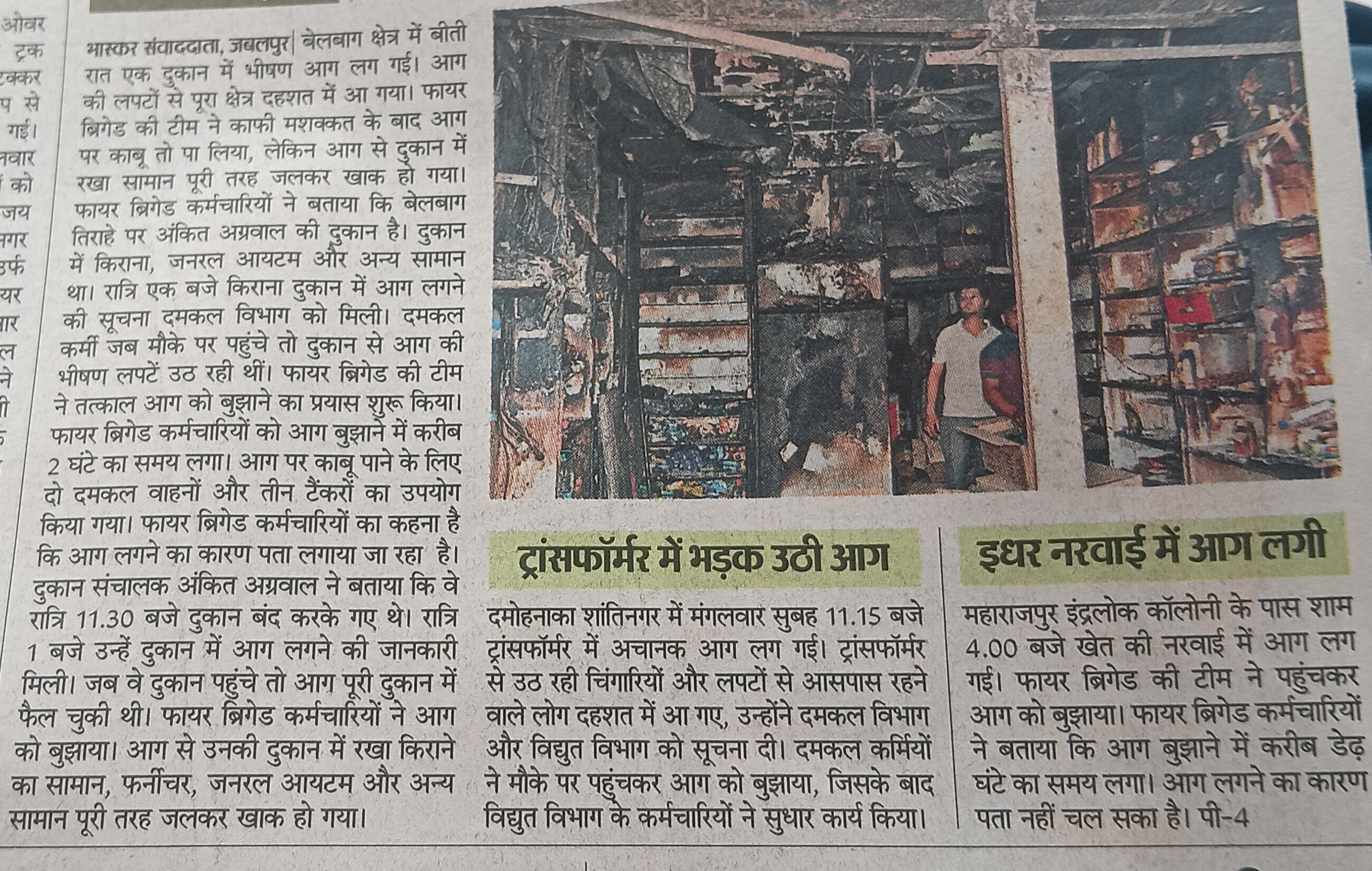 किराना दुकान में लगी भीषण आग क्षेत्र में फैली दहशत काबू पाने में लगें 2घंटे