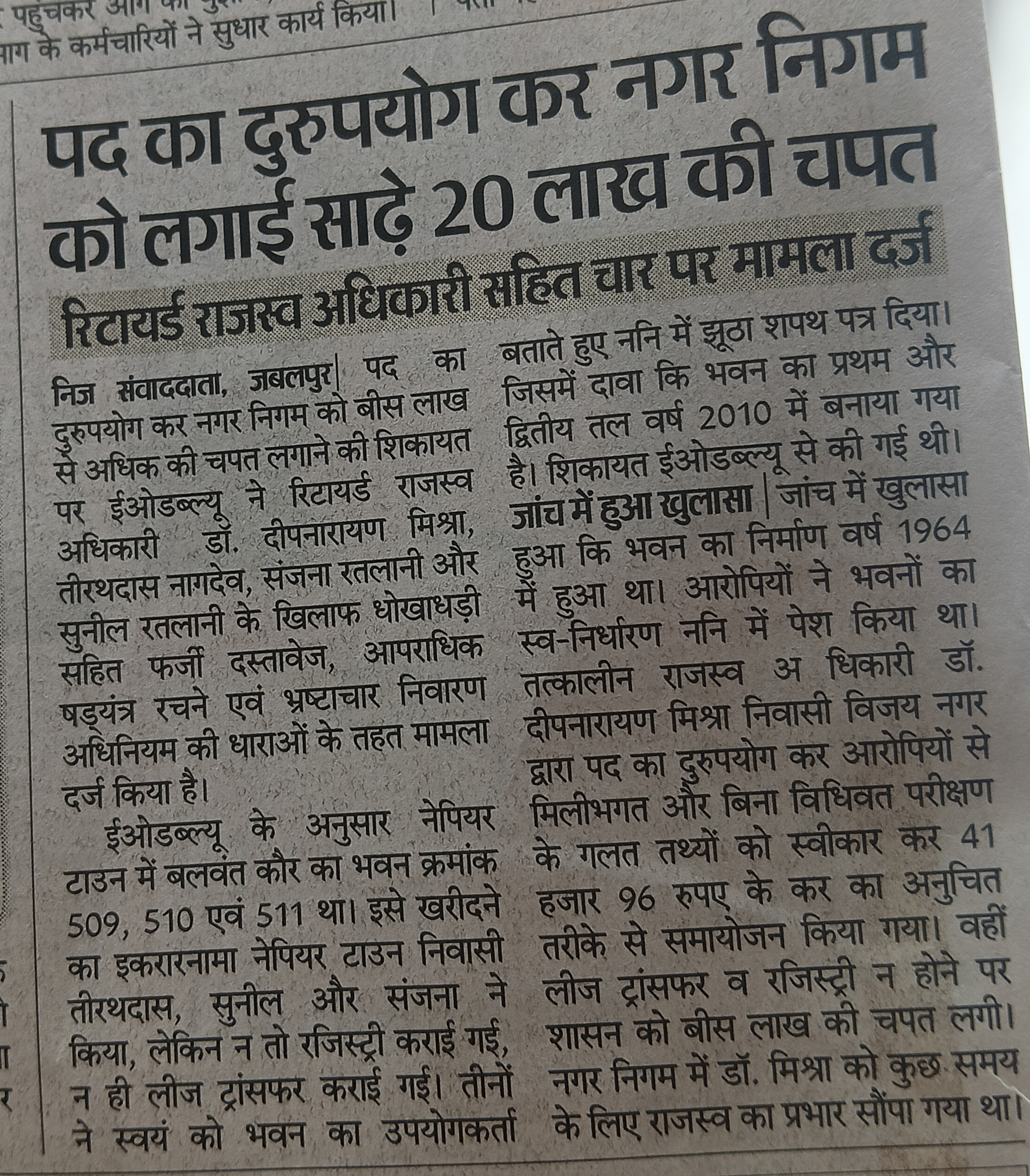 पद का दुरुपयोग कर नगर निगम को लगाईं साढ़े 20लाख की चपत