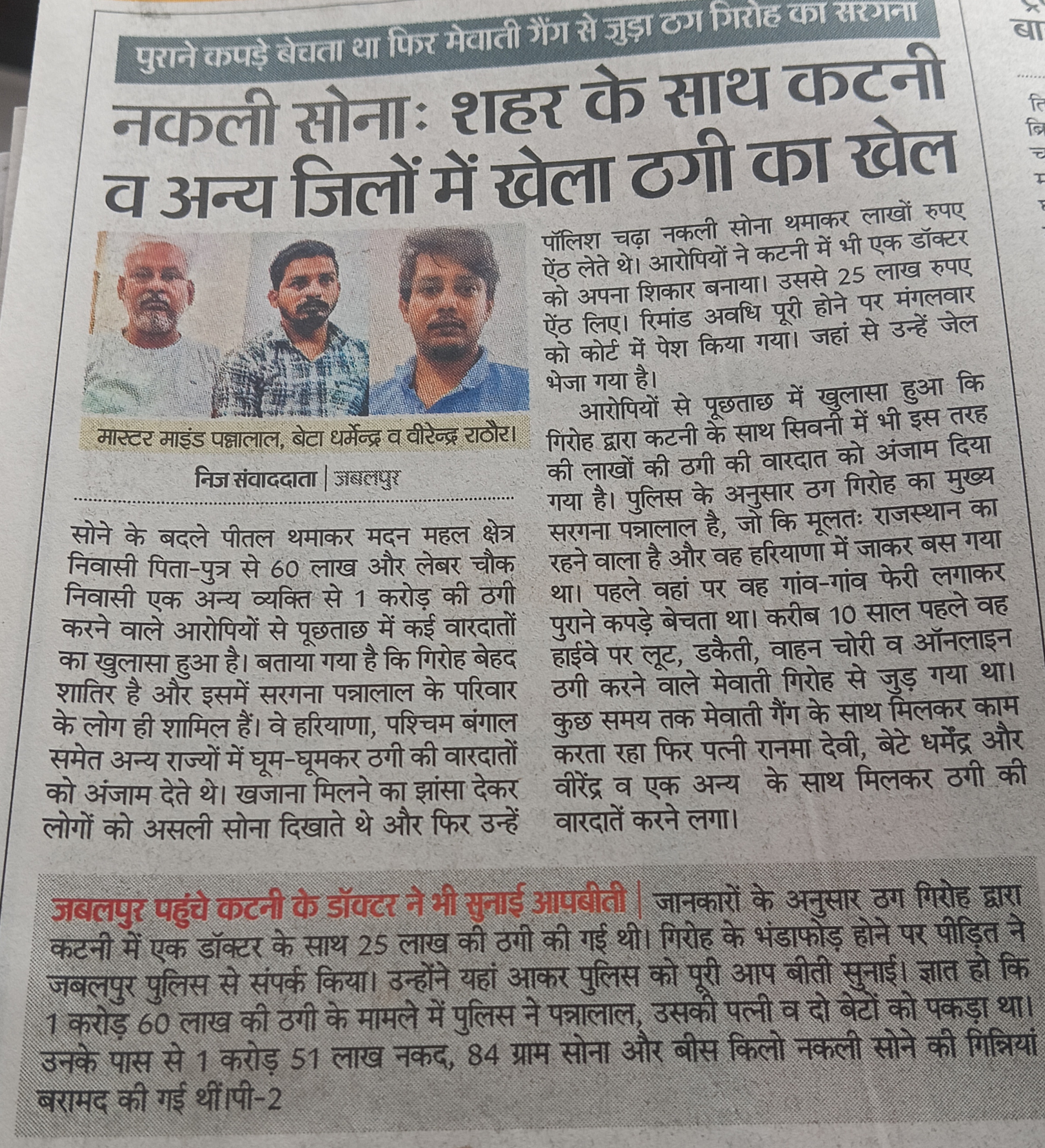 नकली सोना शहर के साथ कटनी व अन्य जिलों में खेला ठगी