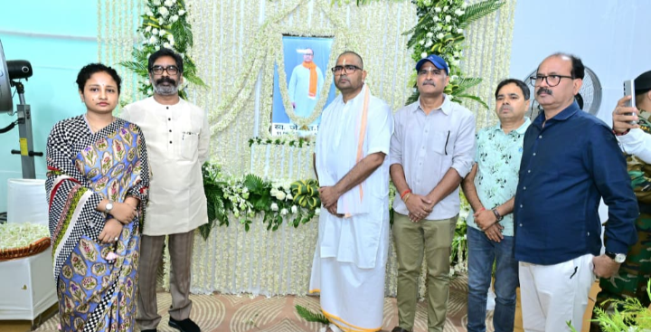 रांची (झारखंड)। मुख्यमंत्री श्री हेमन्त सोरेन एवं विधायक श्रीमती कल्पना सोरेन आज दिवंगत जे. एन. सिंह जी (राज्य सरकार के अवकाश प्राप्त अधिकारी ) के निधन पर आयोजित संस्कार भोज में सम्मिलित होने उनके पिस्का मोड़ (शारदा बैट्री गली), रांची स्थित आवास पहुंचे। यहां उन्होंने स्मृति शेष जेएन सिंह जी की तस्वीर पर माल्यार्पण कर भावभीनी श्रद्धांजलि अर्पित की।