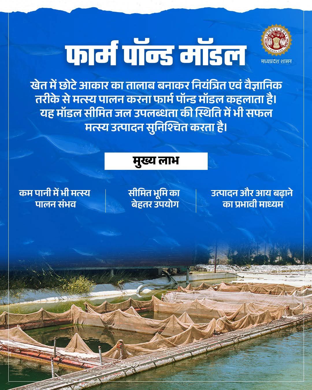 फार्म पॉन्ड मॉडल के माध्यम से कम जल संसाधनों में भी प्रभावी मत्स्य उत्पादन संभव।