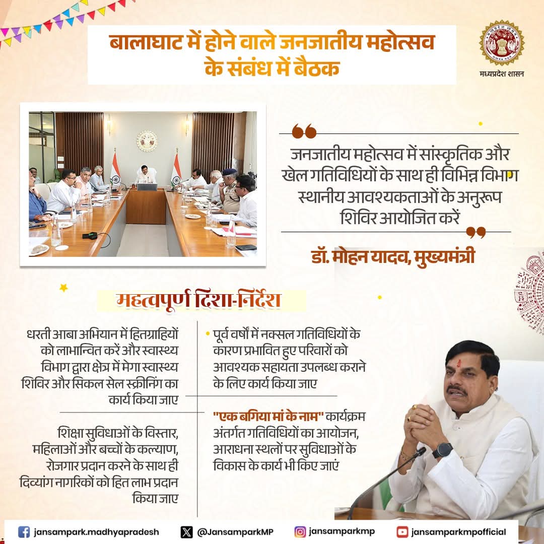 मुख्यमंत्री डॉ मोहन यादव द्वारा #बालाघाट में होने वाले जनजातीय महोत्सव के संबंध में बैठक