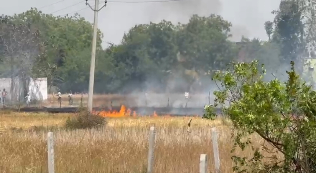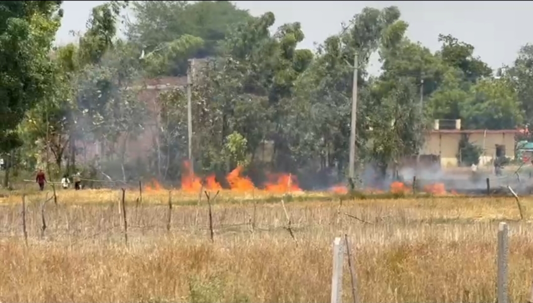 नुवावा ग्राम के पूरे गोपाल में भीषण आग, गेहूं की फसल जलकर राख