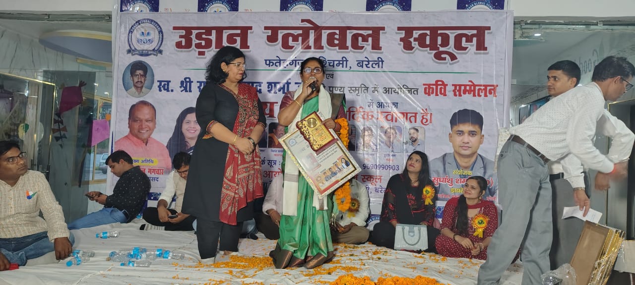 फतेहगंज पश्चिमी। उड़ान ग्लोबल स्कूल में स्वर्गीय श्री राजेन्द्र प्रसाद शर्मा की पुण्य स्मृति में आयोजित भव्य कवि सम्मेलन ‘काव्य तरंग–2026’ शनिवार को गरिमामय वातावरण में सम्पन्न हुआ। कार्यक्रम का आयोजन स्कूल के डायरेक्टर सुधांशु शर्मा के निर्देशन में किया गया, जिसमें देश के विभिन्न हिस्सों से आए ख्यातिप्राप्त कवियों ने अपनी सशक्त प्रस्तुतियों से श्रोताओं को मंत्रमुग्ध कर दिया।