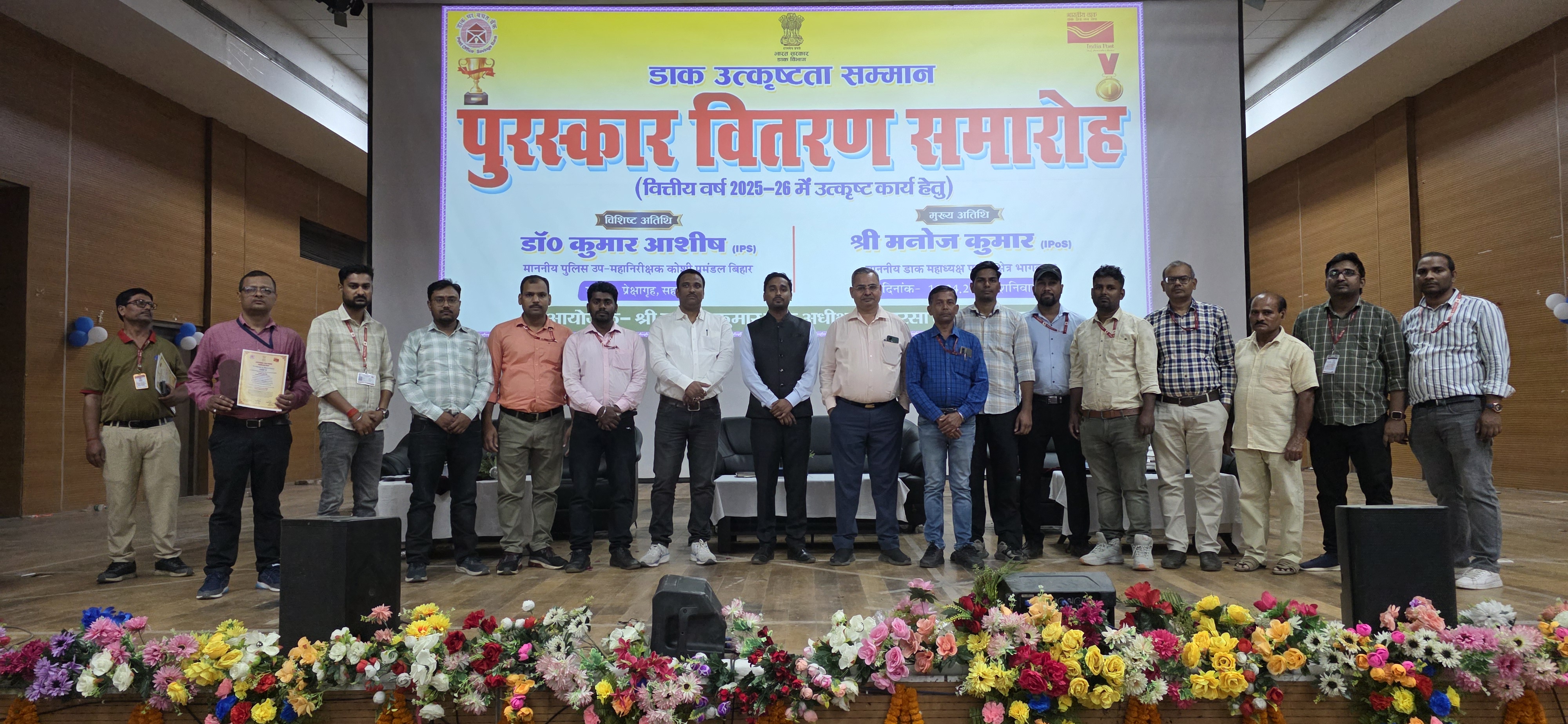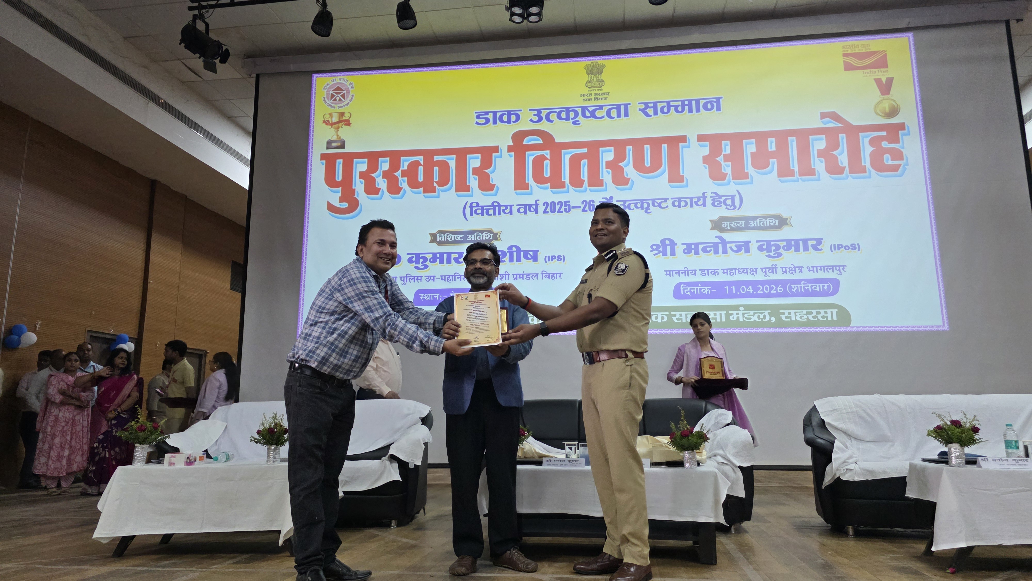 सहरसा। भारतीय डाक विभाग द्वारा डाक उत्कृष्टता सम्मान के अंतर्गत वर्ष 2025–26 के उत्कृष्ट कार्यों के लिए एक भव्य **पुरस्कार वितरण समारोह** का आयोजन किया गया। इस अवसर पर विभाग के कई अधिकारियों एवं कर्मचारियों को उनके उत्कृष्ट योगदान के लिए सम्मानित किया गया।
