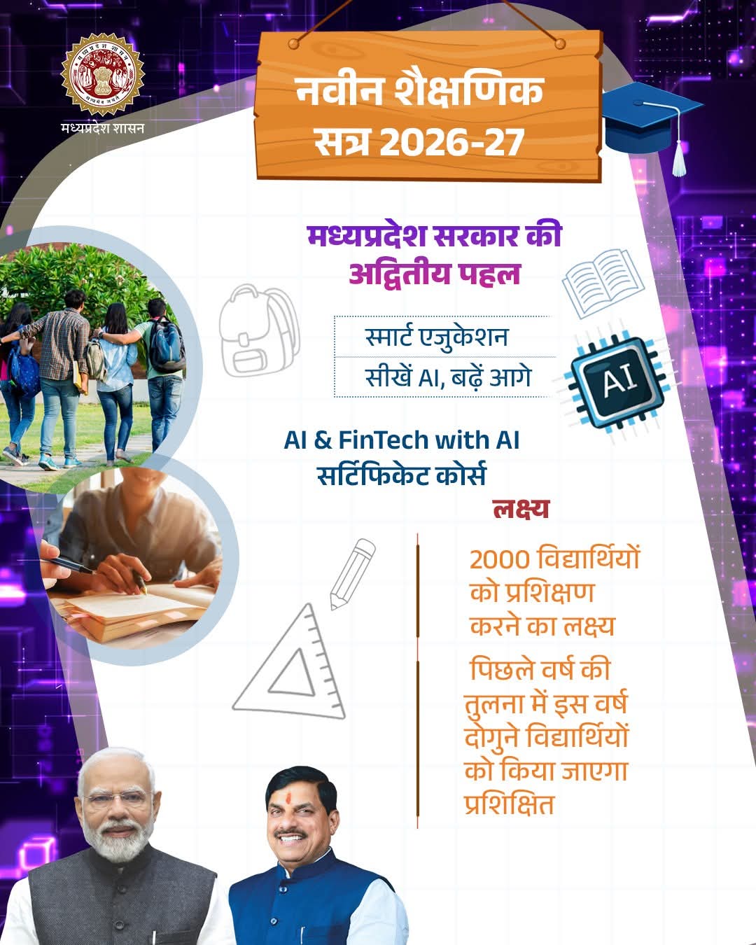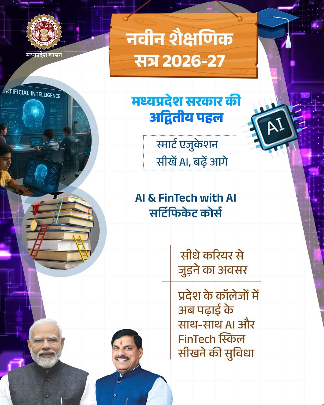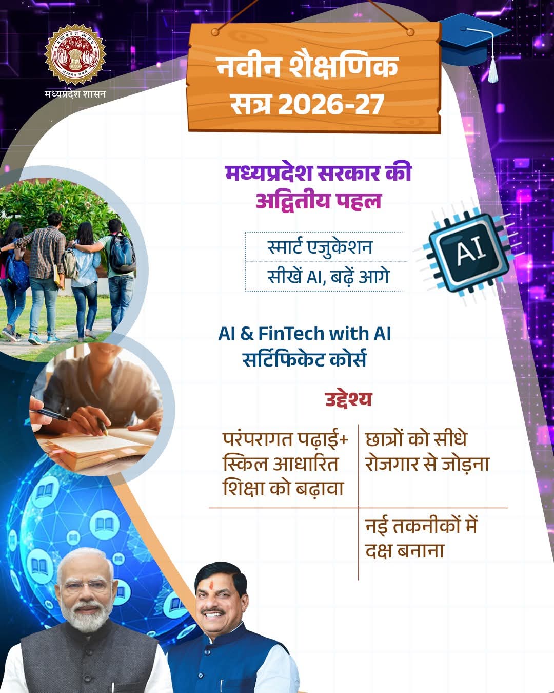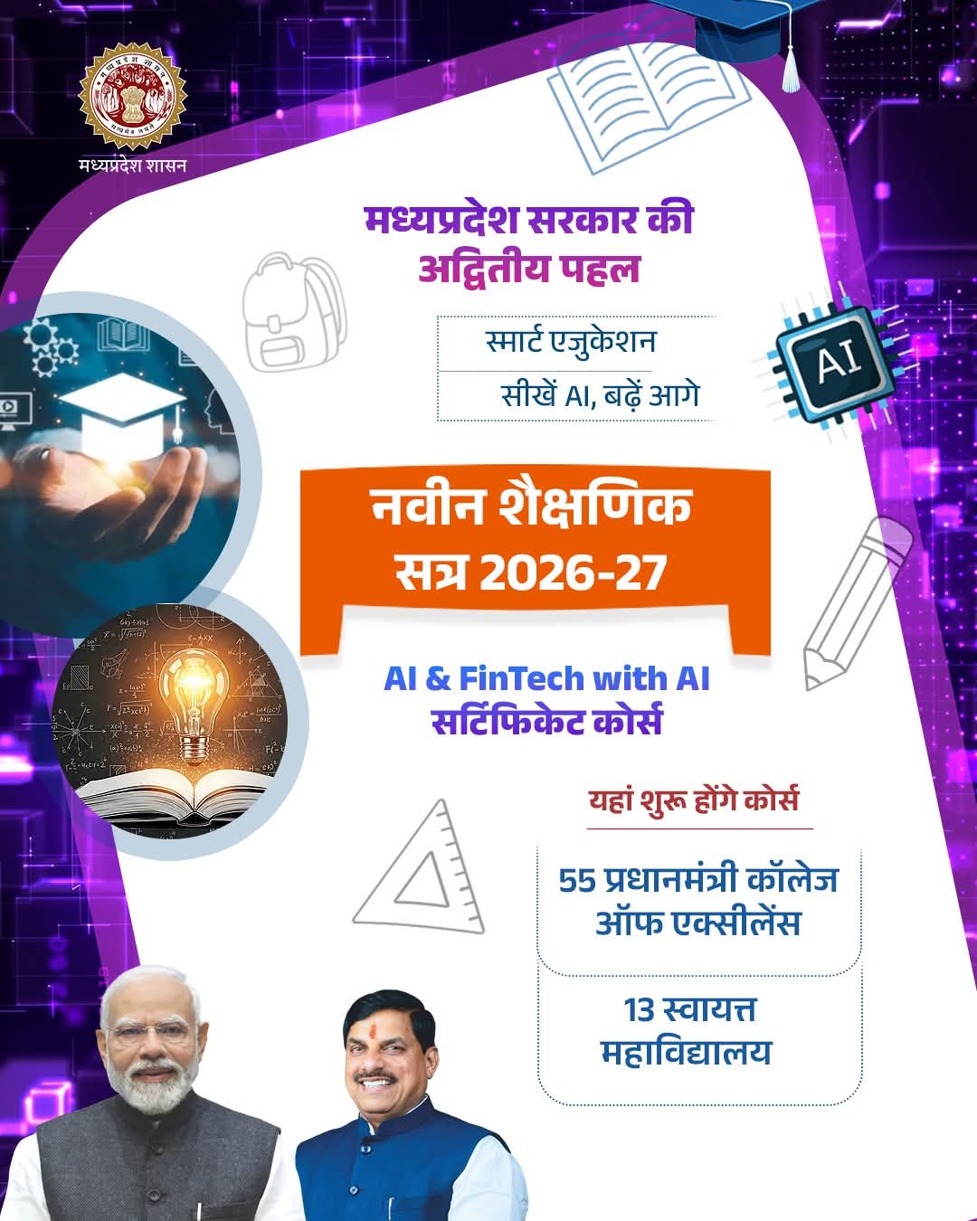नवीन शैक्षणिक सत्र 2026-27 से प्रदेश के 68 महाविद्यालयों में शुरू होगा AI & FinTech with AI सर्टिफिकेट कोर्स
