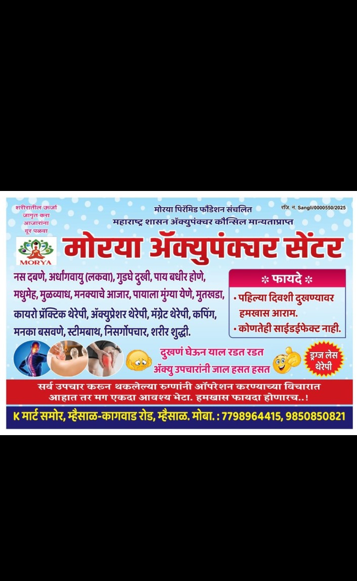 मैशाळ मिरज या गावांमध्ये मोरया ॲक्युपंचर सेंटर चालू करण्यात आले