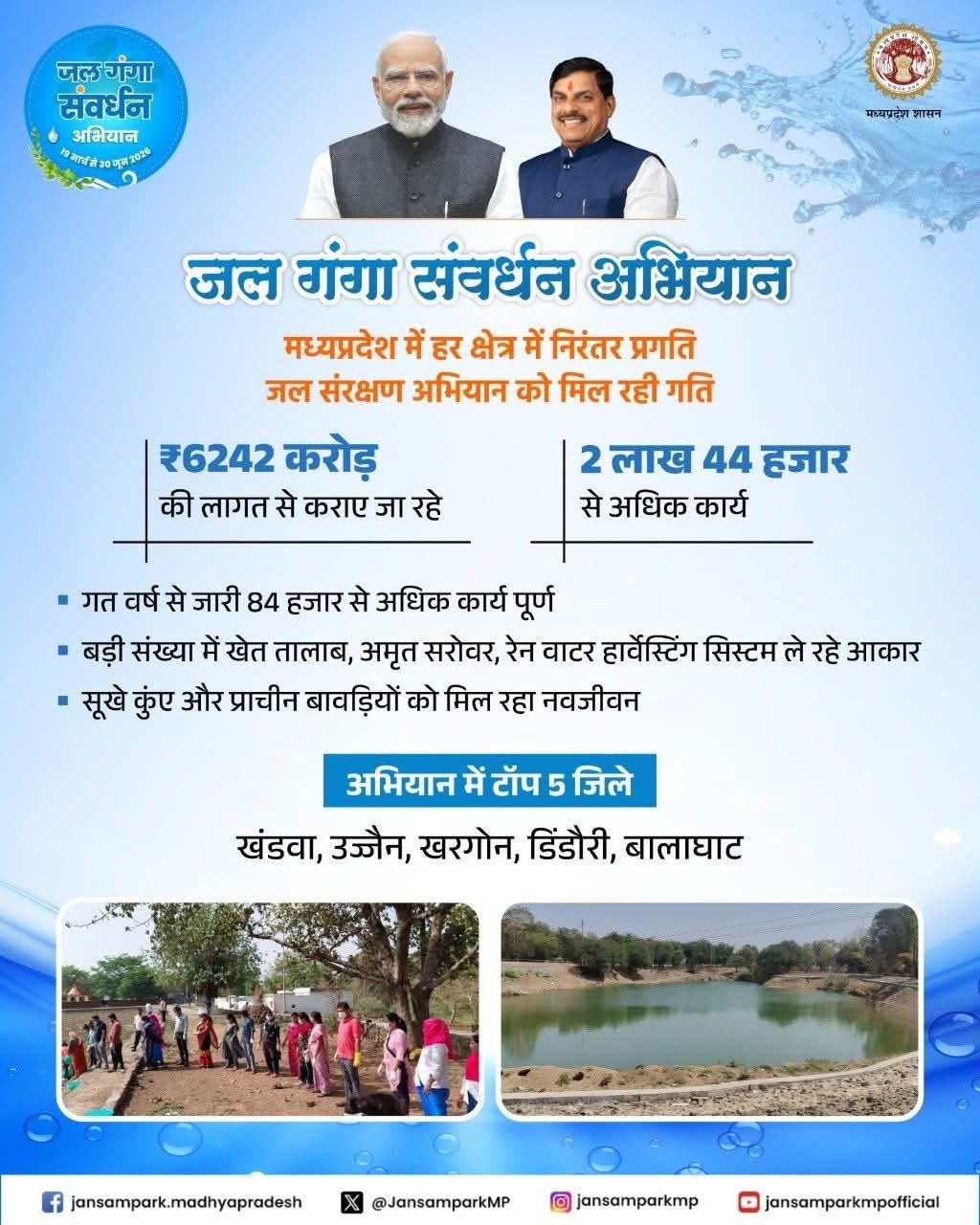 💧प्रदेश में ₹6242 करोड़ की लागत से कराए जा रहे 2 लाख 44 हजार से अधिक कार्य