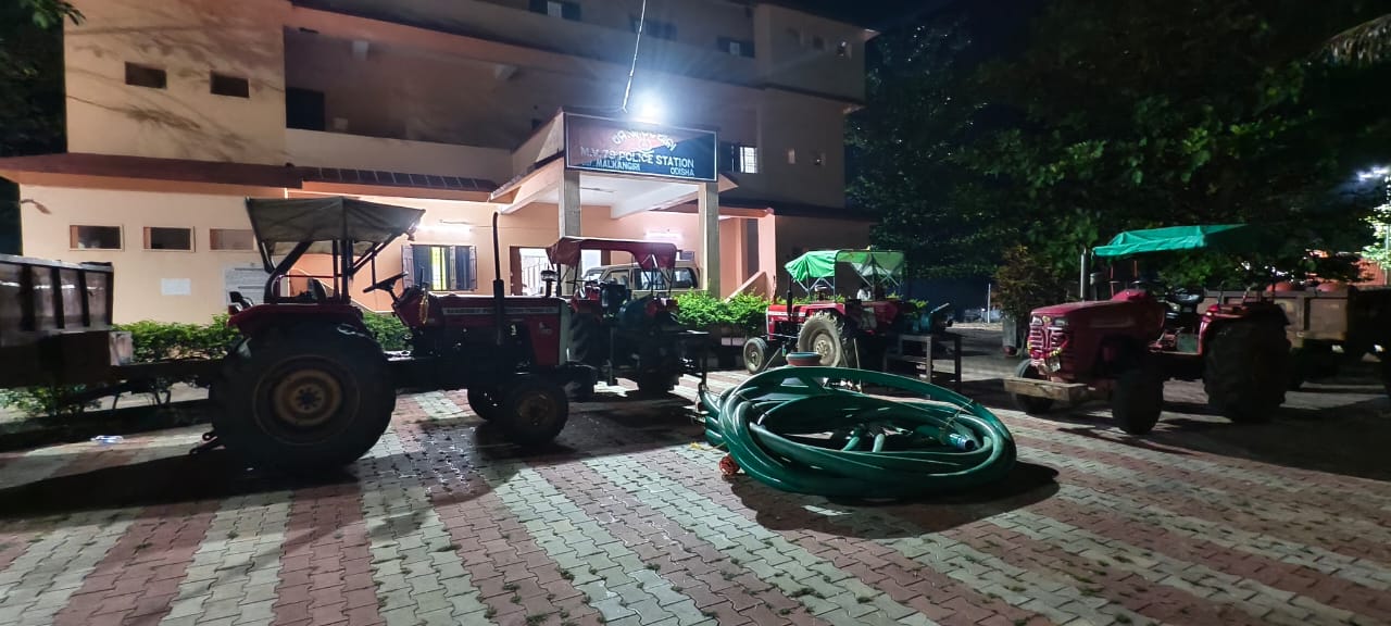 ମାଲକାନଗିରି ଜିଲ୍ଲାର ଏମଭି-79 ଅଞ୍ଚଳରେ ବେଆଇନ ବାଲି ଚାଲାଣ ଉପରେ ପୋଲିସର କଡା କାର୍ଯ୍ୟାନୁଷ୍ଠାନ। ଏମଭି-79 ପୋଲିସ ପକ୍ଷରୁ ହଠାତ୍ ଚଢ଼ାଉ କରାଯାଇ ୪ଟି ଗାଡିକୁ ଜବତ କରାଯାଇଛି।