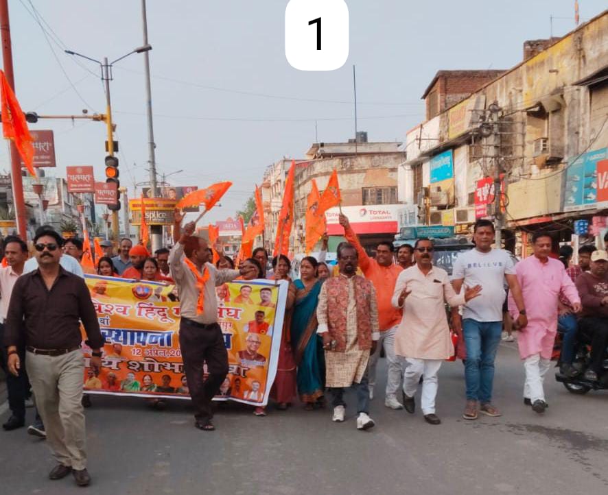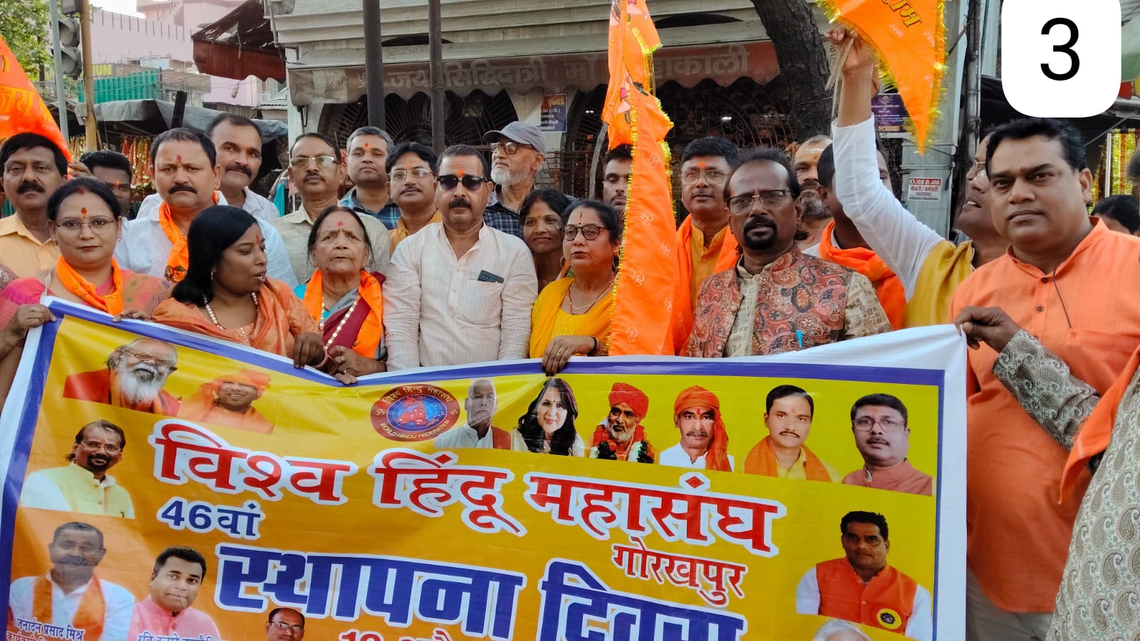 गोरखपुर। विश्व हिंदू महासंघ के 46 वें स्थापना दिवस पर आज दिनांक 12 अप्रैल 2026 को शाम के 4 बजे श्री काली माता मंदिर गोलघर गोरखपुर पर हनुमान चालीसा पाठ तथा हवन का कार्यक्रम कर वंदे मातरम् का घोष तथा गान करते हुए चेतना तिराहे तक एक शोभा यात्रा धूमधाम के साथ कार्यकारी जिला अध्यक्ष श्री जनार्दन मिश्रा की अध्यक्षता में तथा मुख्य अतिथि डॉक्टर राकेश श्रीवास्तव प्रदेश अध्यक्ष सांस्कृतिक प्रकोष्ठ तथा विशिष्ट अतिथि गण डॉक्टर विनय मल्ल प्रदेश अध्यक्ष योग प्रकोष्ठ, श्री श्याम बाबू शर्मा प्रदेश छेत्रीय महामंत्री, श्री बंशीधर जायसवाल प्रदेश मंत्री, डॉ गिरीश चंद्र द्विवेदी प्रदेश मंत्री अधिवक्ता प्रकोष्ठ के संरक्षण में तथा जिला प्रभारी राधाकांत वर्मा, अधिवक्ता गण अजय कुमार दुबे, जयप्रकाश मिश्र, अजय शंकर त्रिपाठी, आनंद चंद्रधर द्विवेदी, योगेंद्र प्रताप नारायण गिरी, श्री अजय कुमार विश्वकर्मा जिला उपाध्यक्ष, डॉ संतोष गुप्ता, कुमारी सपना श्रीवास्तव प्रदेश क्षेत्रीय महामंत्री, श्रीमती लीला श्रीवास्तव प्रदेश उपाध्यक्ष, श्रीमती मीरा दुबे प्रदेश मंत्री, श्रीमती दीपमाला शर्मा प्रदेश मंत्री, श्रीमती शैलेश सिंह जिला अध्यक्ष, श्रीमती पुष्पा जैन जिला महामंत्री मातृशक्ति, श्री संतोष कुमार विश्वकर्मा, श्री उमेश शर्मा, श्री अशोक चटर्जी जिला उपाध्यक्ष गण, श्री रवि दुलारे कनौजिया जिला महामंत्री, श्री सत्येंद्र सिंह महानगर अध्यक्ष, श्री गोविंद कुशवाहा श्री चंदन मौर्य श्री ऋषभ दुबे श्री रामानंद निषाद आदि के सहयोग से निकाली गई। विश्व हिंदू महासंघ के इस 46 में स्थापना समारोह में निम्न के अतिरिक्त मातृशक्ति की प्रिया शुक्ला संगीता शाही शालू गुप्ता लक्ष्मी गुप्ता लक्ष्मी सिंह श्वेता सिंह शशि प्रभा श्रीवास्तव लाली देवी सारिका सिंह आदि के साथ श्री आशीष निषाद संदीप सैनी नितेश गुप्ता अमरनाथ मनी विनोद कुमार यादव प्रभात नाथ मिश्रा के के मिश्रा अनुपम त्रिपाठी दीपक पांडे धीरज राय चिन्मयानंद माल शिवानंद श्रीवास्तव देवेंद्र पांडे अंशुमान मिश्रा कमल नयन सिंह आदि क्यों सराहनीय उपस्थिति रही। इस संपूर्ण कार्यक्रम में महामंडलेश्वर कनकेश्वरी नंद गिरी जी महाराज प्रदेश प्रभारी किन्नर प्रकोष्ठ का यथेष्ट आशीर्वाद मिलता रहा।
