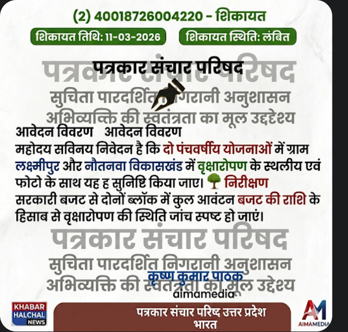 महराजगंज जिले के लक्ष्मीपुर एवं नौतनवां विकास खण्ड के ग्राम पंचायतों में पौधा रोपण के जांच आरजीआरयस पोर्टल पर दर्ज किया। कृष्ण कुमार पाठक