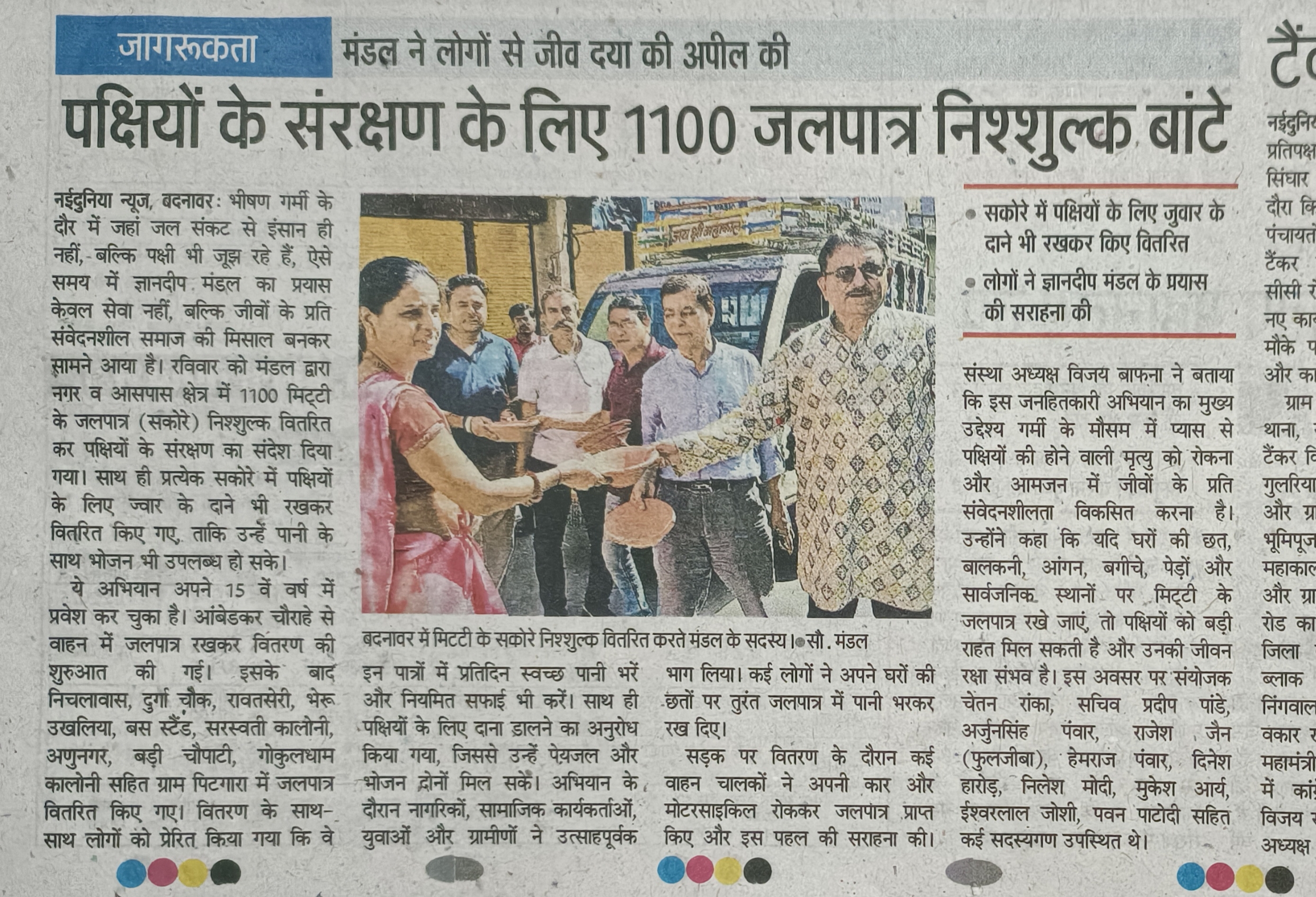 पक्षियों के संरक्षण के लिए 1100 जल पात्र निशुल्क बांटे ।