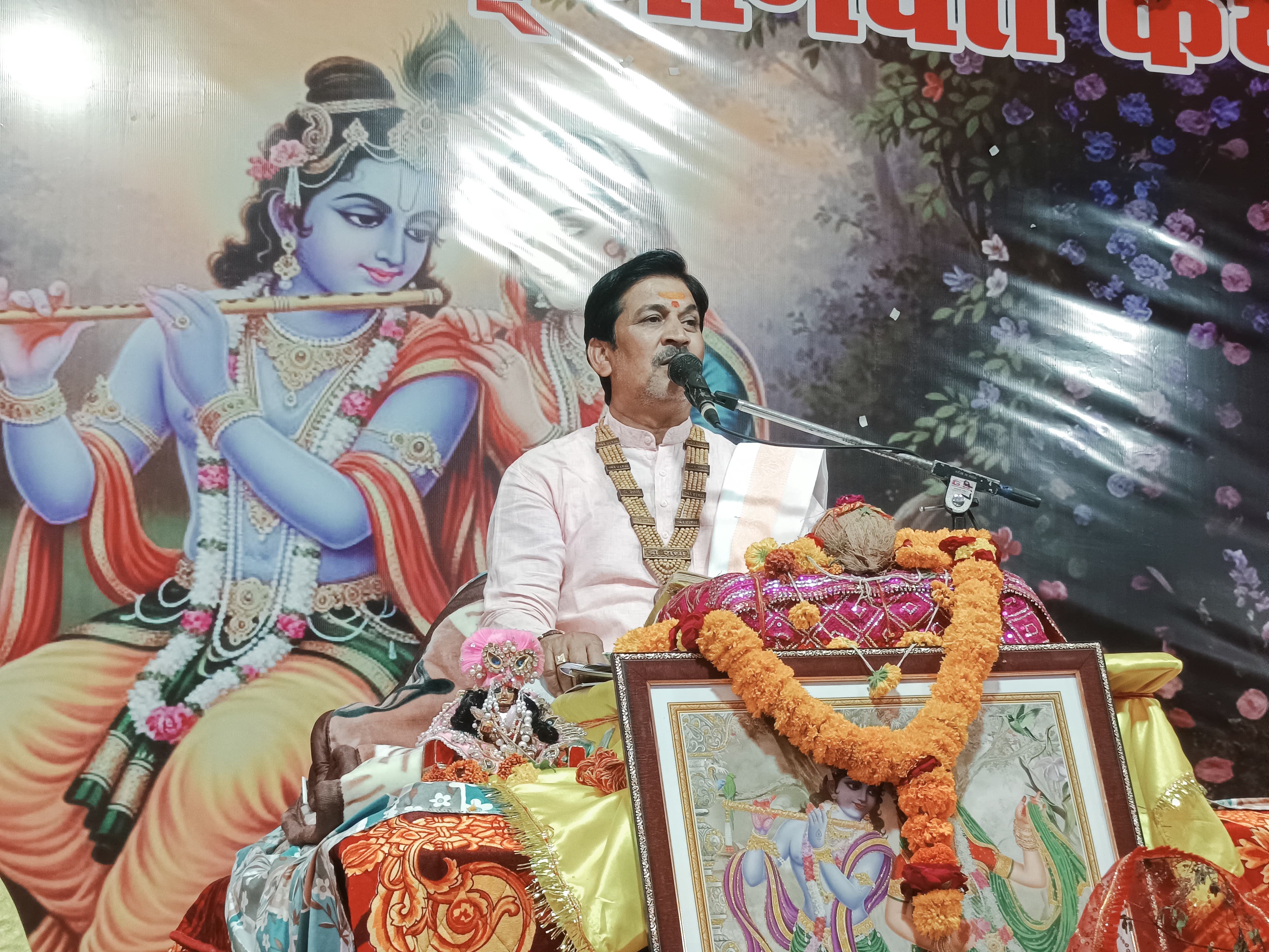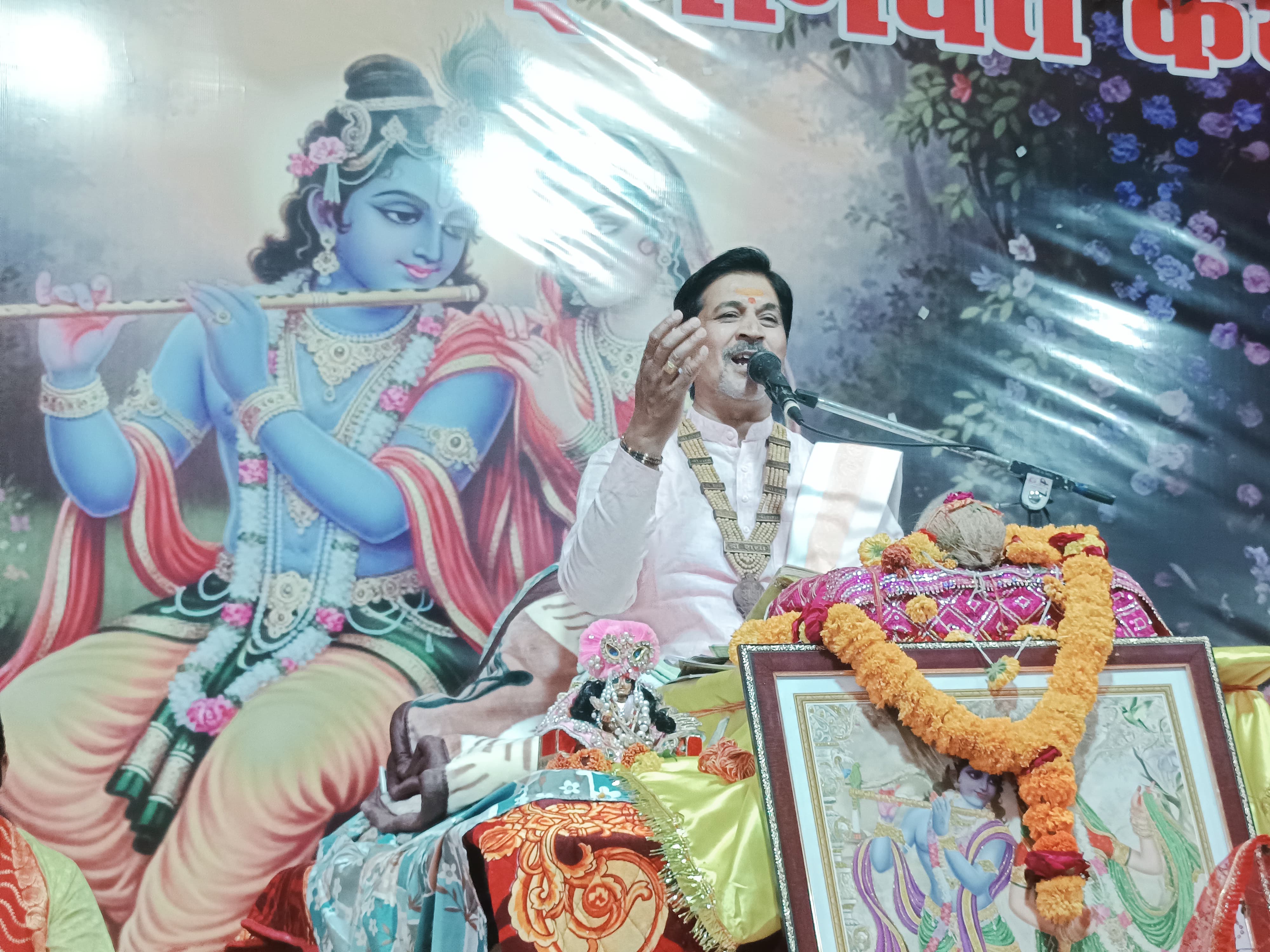भाव के बिना भगवान कीमती चीजें भी नहीं स्वीकारते — कथावाचक दिनेश गर्ग जी ग्राम धनेटा में श्रीमद्भागवत कथा के छठवें दिवस पर रुक्मणी विवाह प्रसंग ने बांध