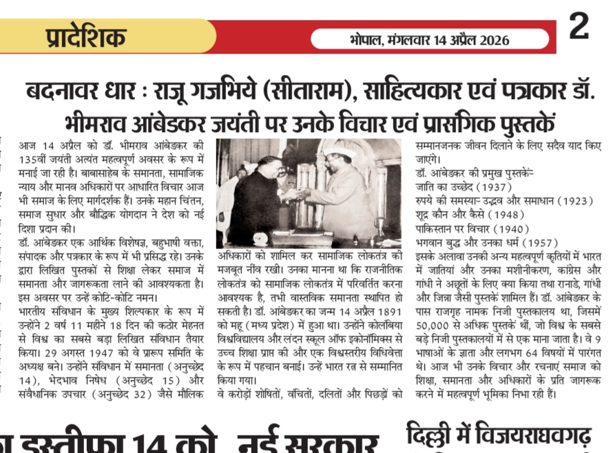 डॉ. भीमराव अम्बेडकर जी की 135वीं जयंती अत्यंत महत्वपूर्ण है। उनके समानता के विचार, समाज सुधार के कार्य, तथा गहन चिंतन–मनन ने उन्हें एक महान अर्थशास्त्री, बहुभाषी वक्ता, संपादक और पत्रकार के रूप में स्थापित किया। उनके द्वारा लिखी गई पुस्तकों से प्रेरणा लेकर हमें समाज में समानता स्थापित करने का प्रयास करना चाहिए।