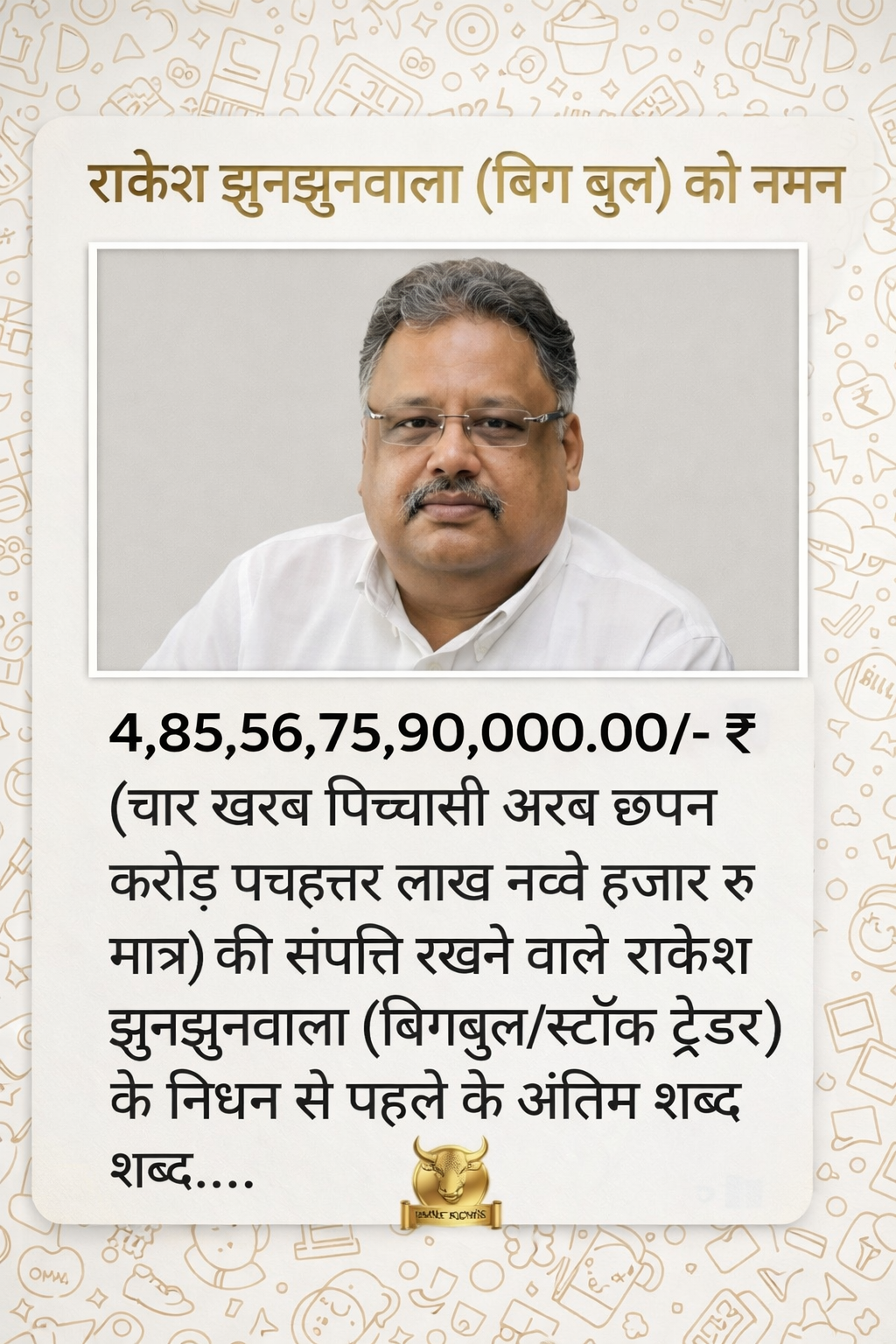 की संपत्ति रखने वाले राकेश झुनझुनवाला ,बिगबुल, के निधन से पहले के अंतिम शब्द