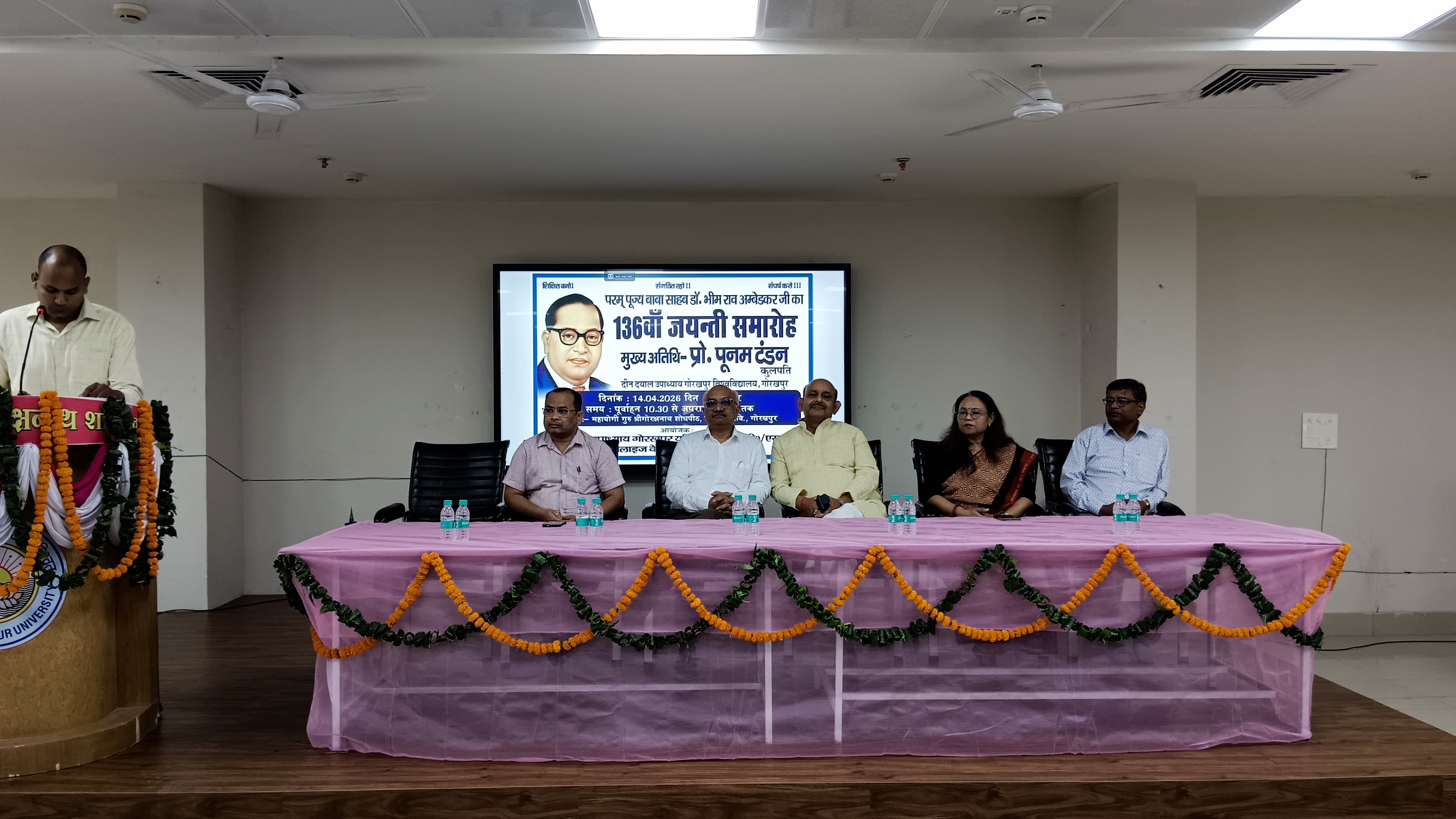 दीनदयाल उपाध्याय गोरखपुर विश्वविद्यालय एससी-एसटी इंप्लाइज वेलफेयर एसोसिएशन के तत्वाधान में विश्वविद्यालय के महायोगी गुरु श्रीगोरक्षनाथ शोधपीठ में बोधिसत्व बाबा साहब डॉ भीमराव अंबेडकर जी की 136वी जयंती धूमधाम से मनाई गईl कार्यक्रम के मुख्य अतिथि विश्वविद्यालय के प्रतिकुलपति प्रोफेसर शांतनु रस्तोगी रहे l उन्होंने अपने उद्बोधन में बाबा साहब के जीवन संघर्षों के बारे में विस्तार से बताते हुए यह कहा कि हम सभी को बाबा साहब के जीवन संघर्षों से बहुत कुछ सीखना चाहिए।