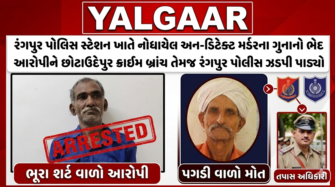 છોટાઉદેપુર જિલ્લામાં રંગપુર પોલીસ સ્ટેશનમાં નોંધાયેલા અન-ડિટેક્ટ મર્ડરના ગુનાનો છોટાઉદેપુર લોકલ ક્રાઈમ બ્રાંચ અને રંગપુર પોલીસની સંયુક્ત કામગીરીથી ઝડપથી ભેદ ઉકેલવામાં આવ્યો છે.