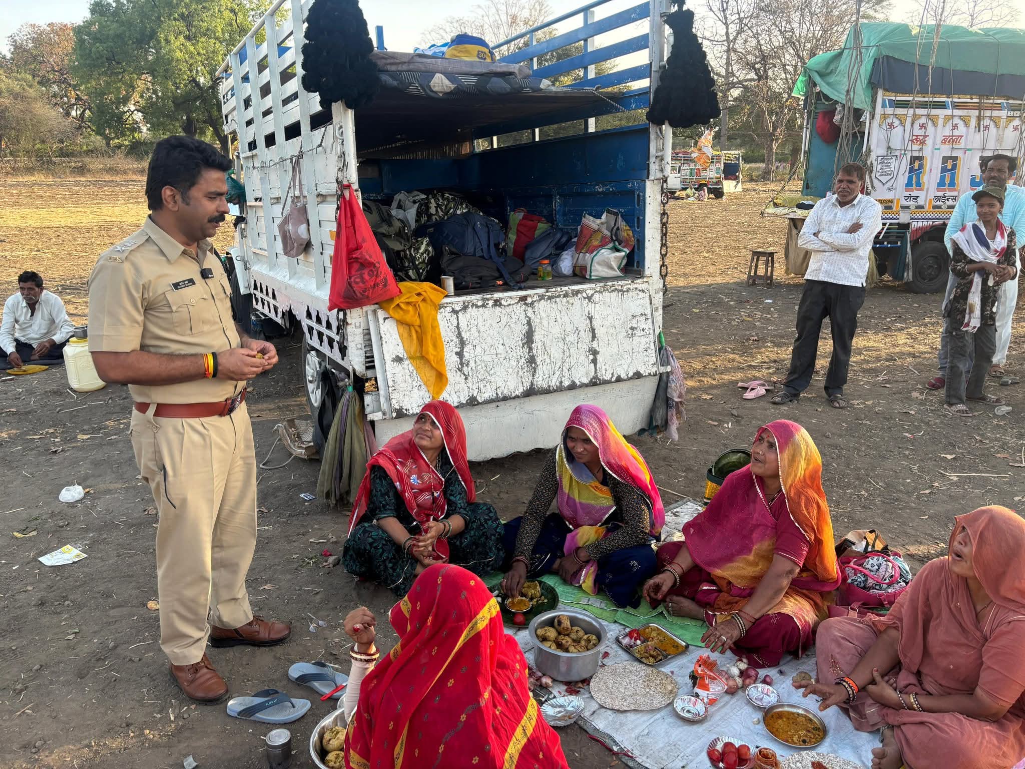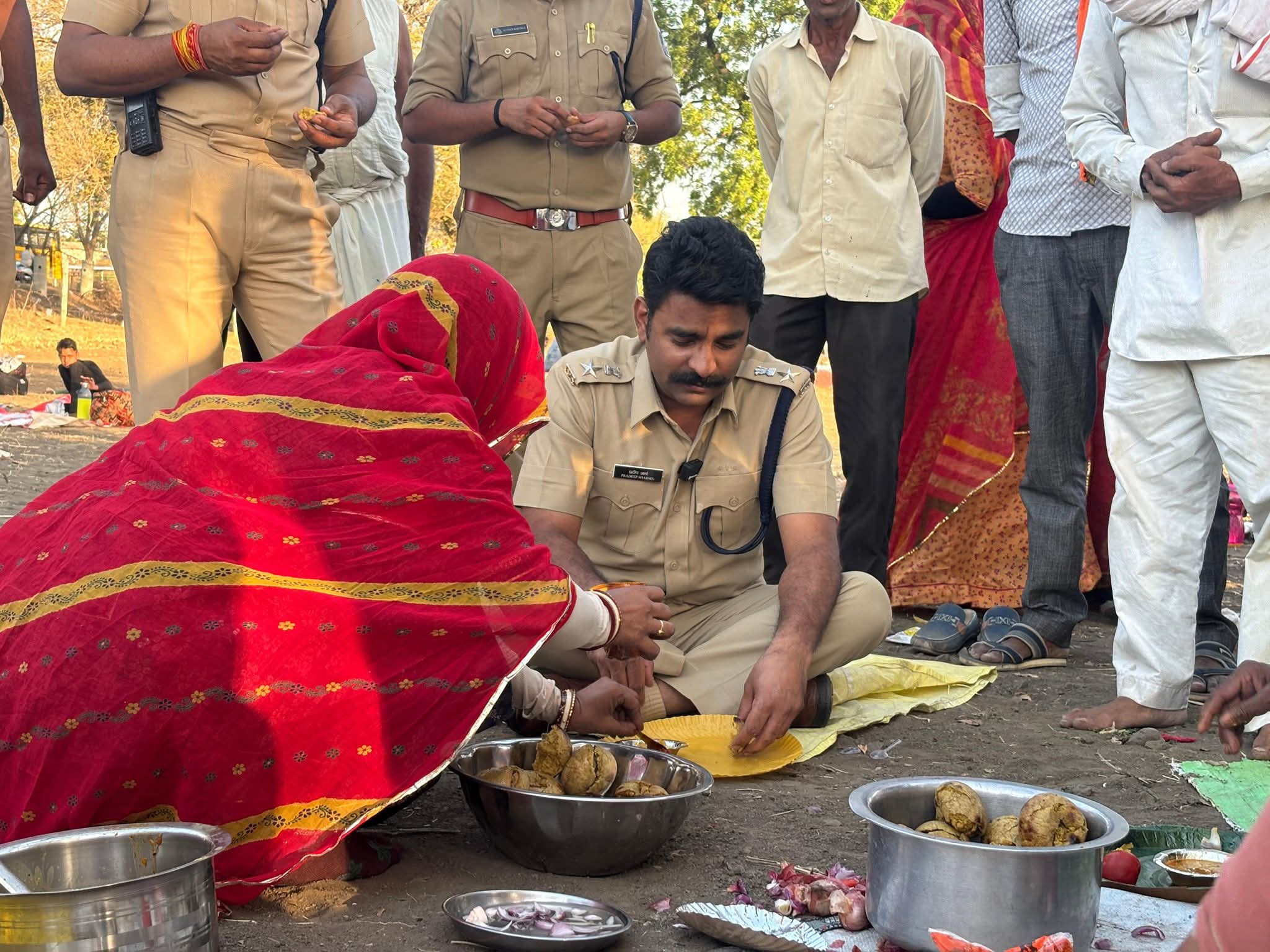 पुलिस अधीक्षक श्री प्रदीप शर्मा ने पंचक्रोशी यात्रा के दौरान जैथल में श्रद्धालुओं से आत्मीय चर्चा की एवं उनके साथ भोजन प्रसादी ग्रहण की।
