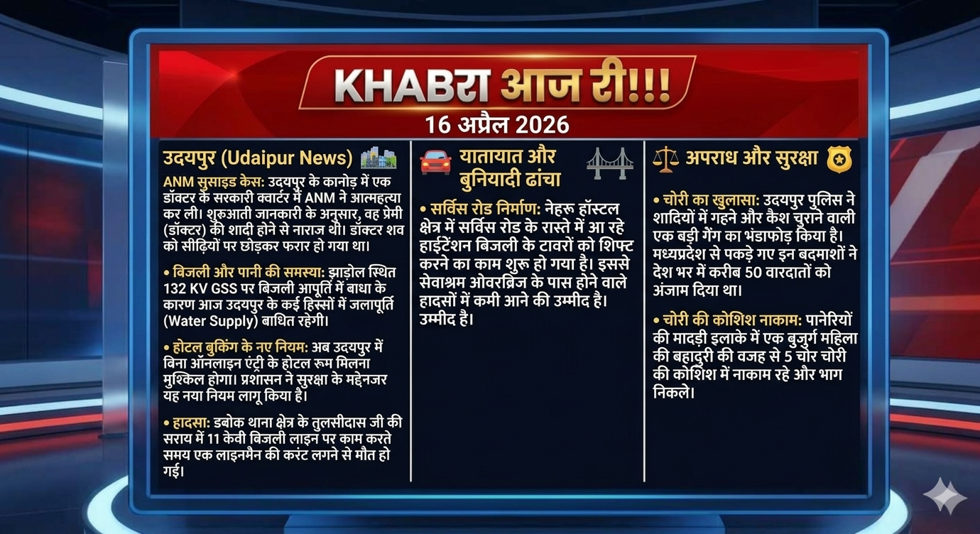 ANM सुसाइड केस: उदयपुर के कानोड़ में एक डॉक्टर के सरकारी क्वार्टर में ANM ने आत्महत्या कर ली। शुरुआती जानकारी के अनुसार, वह प्रेमी (डॉक्टर) की शादी होने से नाराज थी। डॉक्टर शव को सीढ़ियों पर छोड़कर फरार हो गया था।