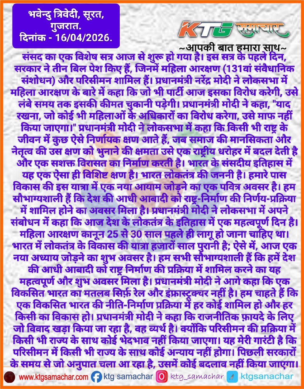 संसद के विशेष सत्र में प्रधानमंत्री मोदी ने लोकसभा में महिला आरक्षण विधेयक पर संबोधन किया।