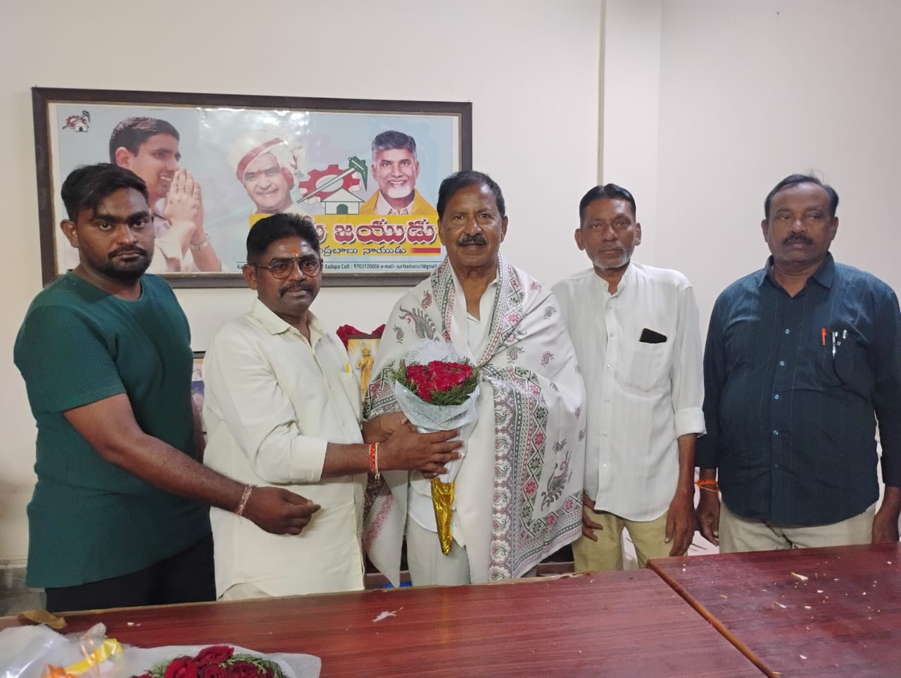 తెలుగుదేశం పార్టీ జాతీయ ఉపాధ్యక్షుడుగా ఎన్నికైనటువంటి బాలిశెట్టి హరిప్రసాద్ గారికి శాలువా తోసత్కారంచేసి పూలగుచ్చము ఇచ్చి ఇంకా ఉన్నతమైన పదవులు పొందాలని శుభాకాంక్షలు తెలిపిన తెలుగుదేశం పార్టీ రాష్ట్ర బీసీ సెల్ కార్యదర్శి తెలుగుదేశం పార్టీ నాయి బ్రాహ్మణ సాధికార సమితి రాష్ట్ర సభ్యులు కోవెలకుంట్ల శ్రీనివాసులు అలియాస్ నబి కోట శ్రీనివాస్ మరియు పందిళ్ళపల్లి మాజీ సర్పంచ్ సగబాలమునుస్వామి నాయి బ్రాహ్మణ సంఘం నాయకులు ఎంవి రమణ తెలుగుదేశం పార్టీ యువ నాయకులు కోయిలకుంట్ల వెంకట సాయి శబరీష్ తదితరులు పాల్గొన్నారు