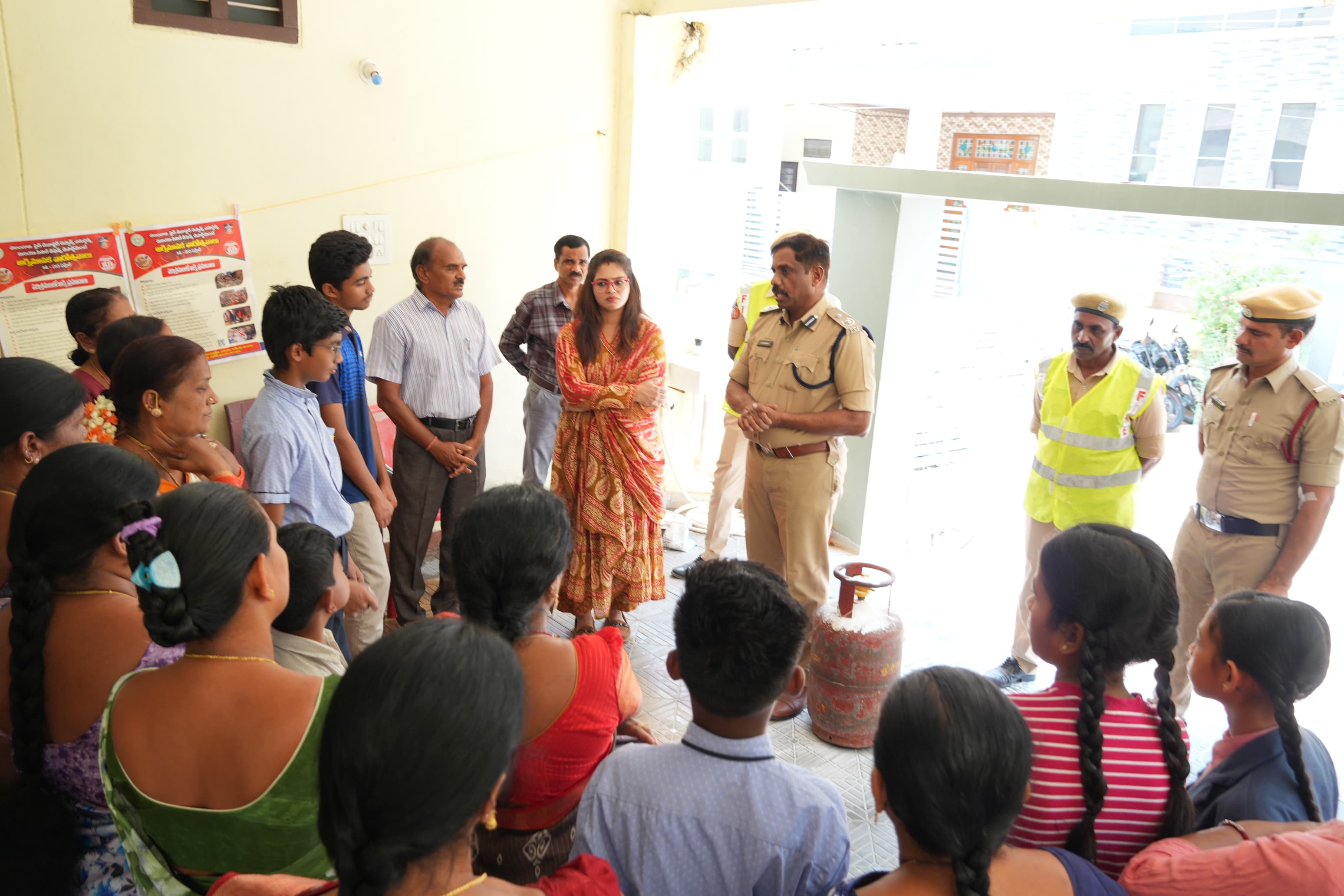 “స్టాప్, డ్రాప్ అండ్ రోల్” పద్ధతి, చిన్న అగ్నిప్రమాదాలను నియంత్రించేందుకు బ్లాంకెట్ ఉపయోగించే విధానం వంటి భద్రతా చర్యలను ప్రదర్శించారు. అలాగే ఎల్పీజీ సిలిండర్లను సురక్షితంగా వినియోగించే విధానం, అగ్నిప్రమాదాల సమయంలో తీసుకోవాల్సిన తక్షణ చర్యలపై ప్రాయోగిక సూచనలు అందించారు.