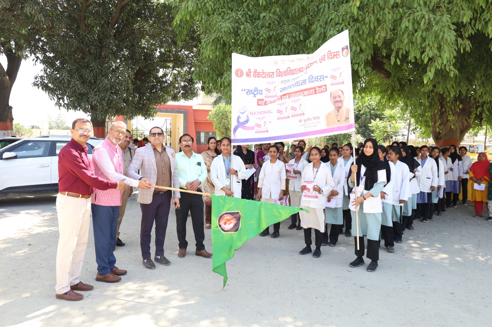 श्री वेंक्टेश्वरा विश्वविद्यालय/संस्थान के ध्यानंद्र खेल परिसर में आयोजित ’’नारी शक्ति वंदन अधिनियम-2026’’ का शुभारम्भ संस्थापक अध्यक्ष श्री सुधीर गिरि, प्रतिकुलाधिपति डाॅ0 राजीव त्यागी, कुलपति प्रो0 कृष्णकान्त दवे, कुलसचिव प्रो0 पीयूष कुमार पाण्डेय आदि ने रैली को हरी झण्डी दिखाकर रवाना करके किया।