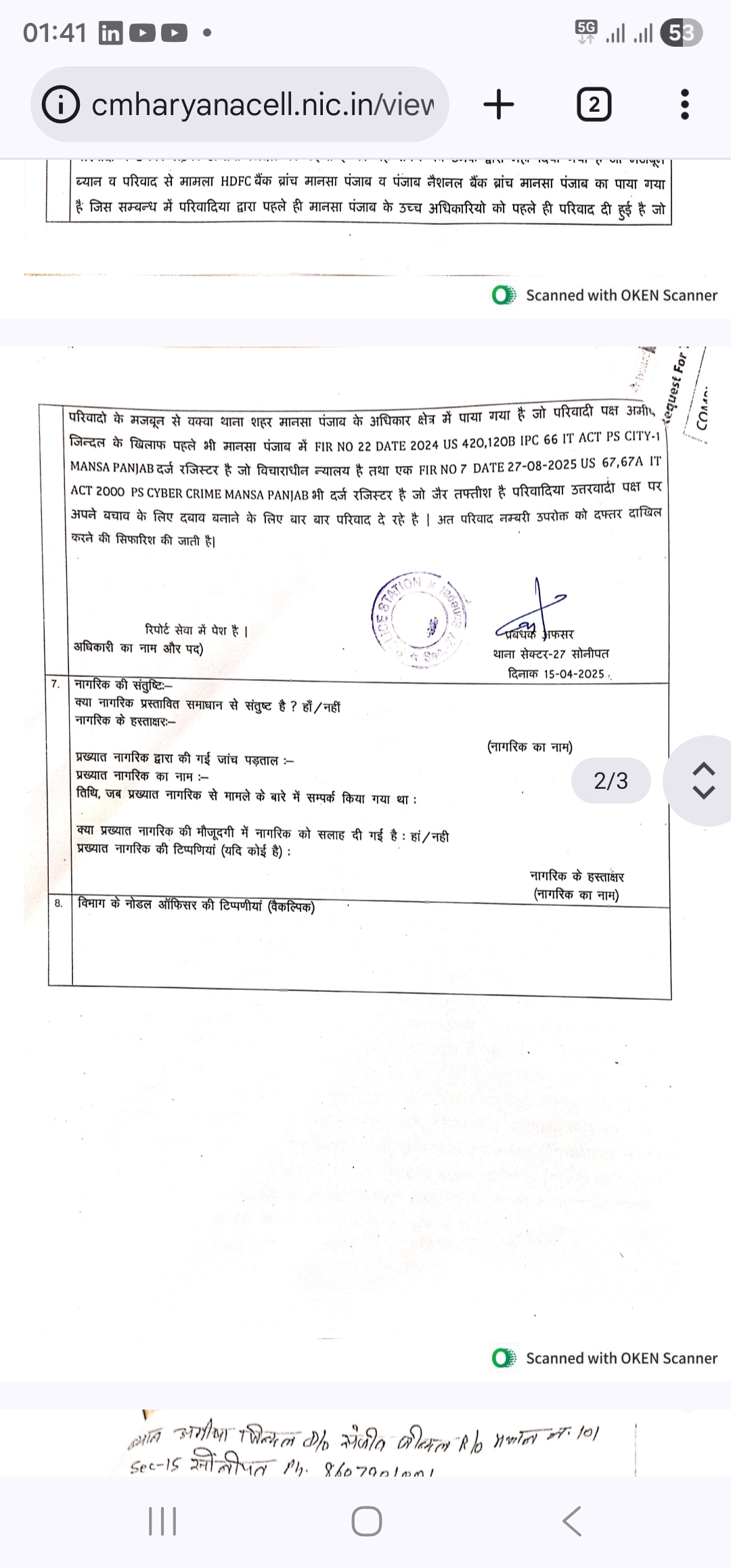 It is understood that the matter is under consideration at the DC Office, Sonipat. However, I am unable to comprehend how Sector-27 Police Station has issued a reply in this matter without any formal communication or direction conveyed to me from your office regarding such delegation. This raises concerns about procedural transparency and jurisdiction.