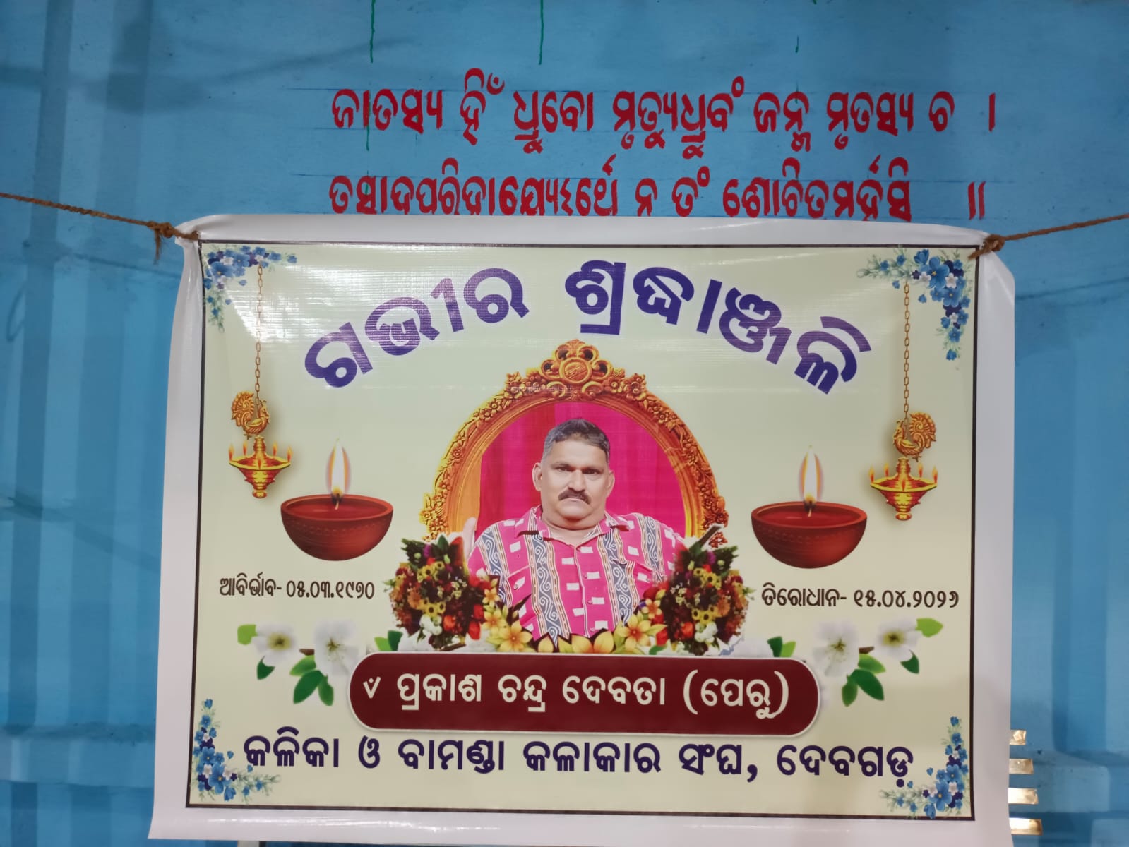 ବାମଣ୍ଡା କଳାକାର ସଂଘ ଓ କଳିକା ଅନୁଷ୍ଠାନ ପକ୍ଷରୁ ସ୍ଵର୍ଗୀୟ ପ୍ରକାଶ ଦେବତା (ପେରୁ)ଙ୍କ ସ୍ମୃତିରେ ଶୋକ ସଭା