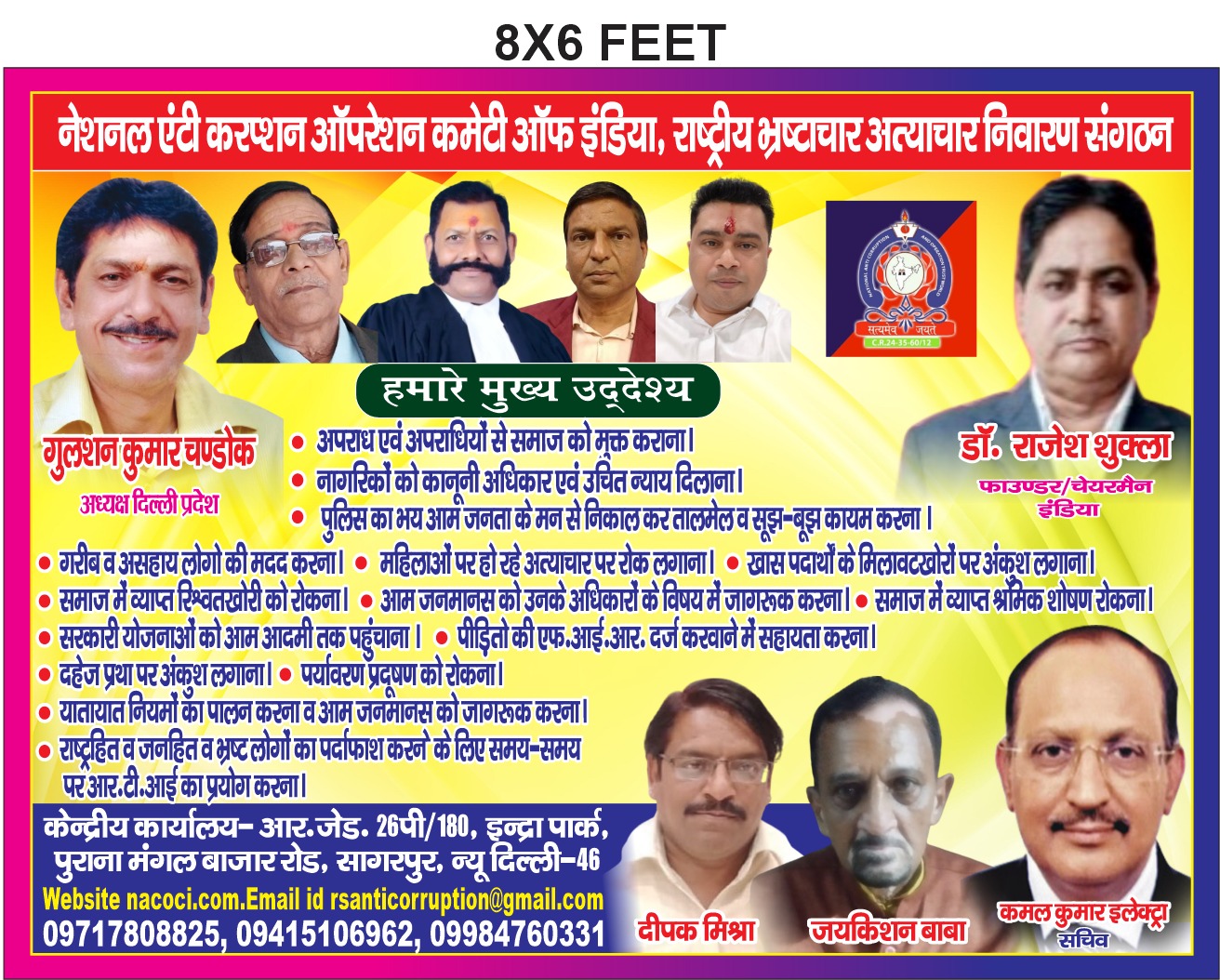 नवी दिल्ली: भारताला भ्रष्टाचारमुक्त करण्याच्या आणि सामान्य नागरिकांना त्यांचे कायदेशीर हक्क मिळवून देण्याच्या उद्देशाने 'नॅशनल अँटी करप्शन ऑपरेशन कमिटी ऑफ इंडिया' (राष्ट्रीय भ्रष्टाचार अत्याचार निवारण संघटना) या संस्थेने आपल्या कार्याचा विस्तार केला आहे. नुकत्याच प्रसिद्ध झालेल्या एका अधिकृत माहितीपत्रकानुसार, संस्थेने समाजातील तळागाळातील समस्या सोडवण्यासाठी १० पेक्षा जास्त मुख्य उद्दिष्टे समोर ठेवली आहेत.