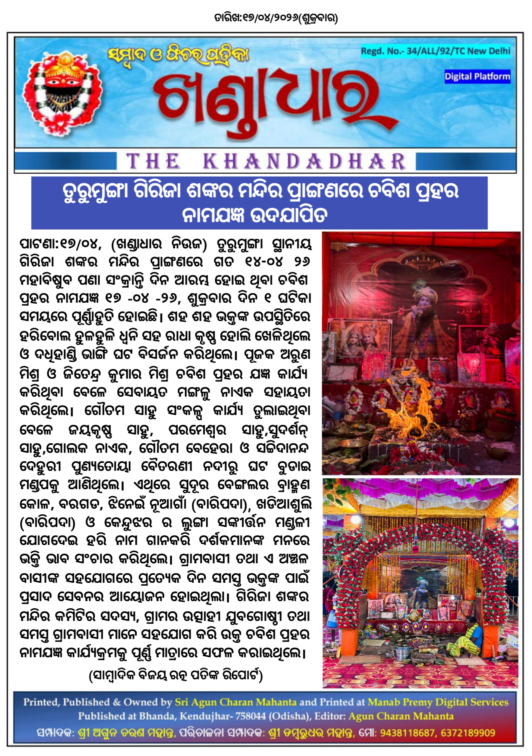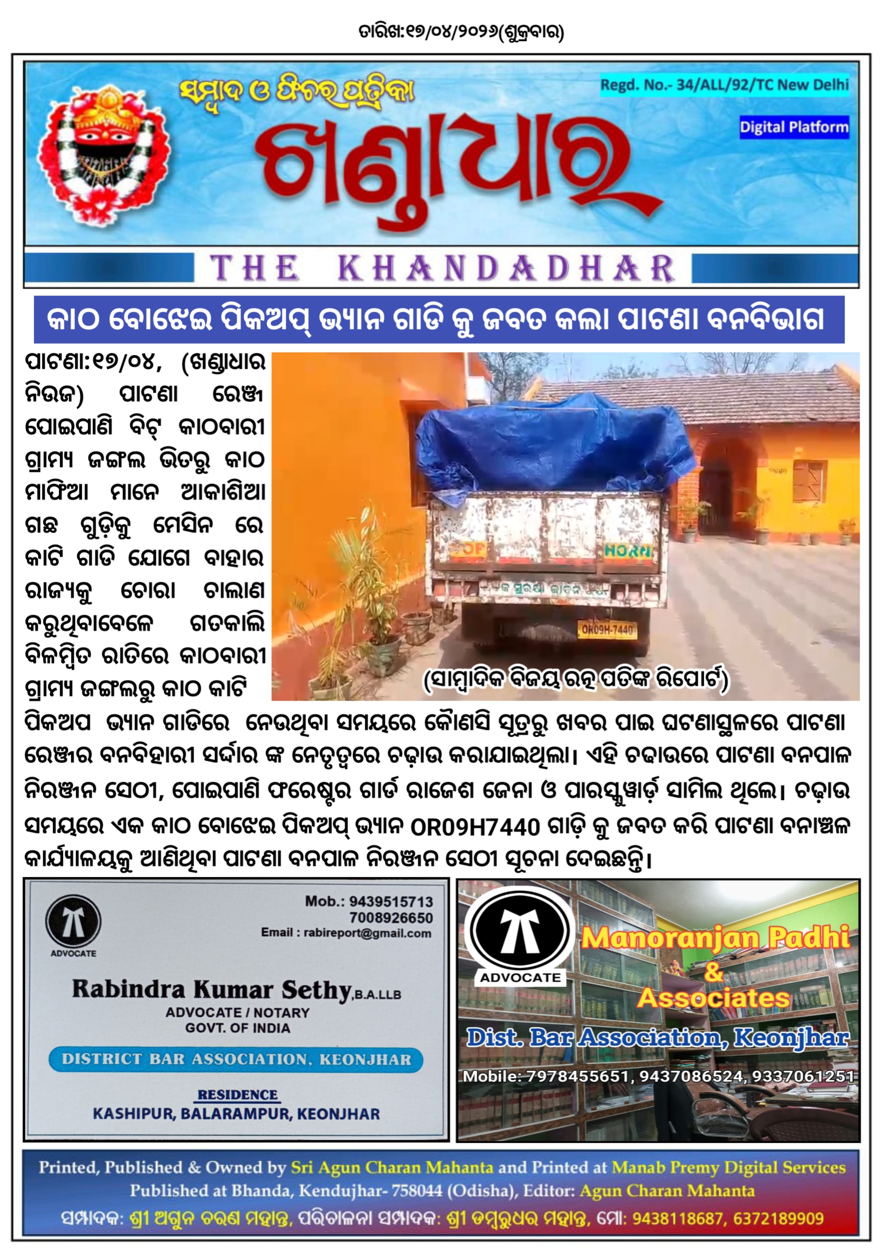 ଖଣ୍ଡାଧାର ନିଉଜ- ସାମ୍ବାଦିକ ବିଜୟ ରତ୍ନ ପତିଙ୍କ ରିପୋର୍ଟ।