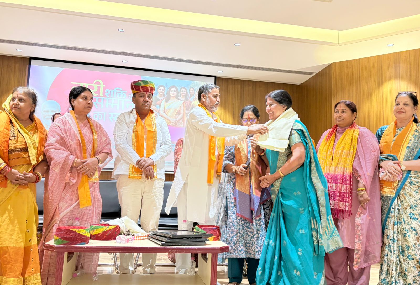 *जोधपुर, 17 अप्रैल 2026:* नारी शक्ति वंदन कार्यक्रम के अंतर्गत जोधपुर इंडस्ट्रीज एसोसिएशन हॉल में गुरुवार को एक भव्य महिला सम्मेलन का आयोजन किया गया। इस सम्मेलन में समाज सेवा के विभिन्न क्षेत्रों में उल्लेखनीय योगदान के लिए महात्मा गांधी चिकित्सालय, जोधपुर की वरिष्ठ नर्सिंग अधिकारी एवं किचन विभाग प्रभारी तेज कवर को सम्मानित किया गया।