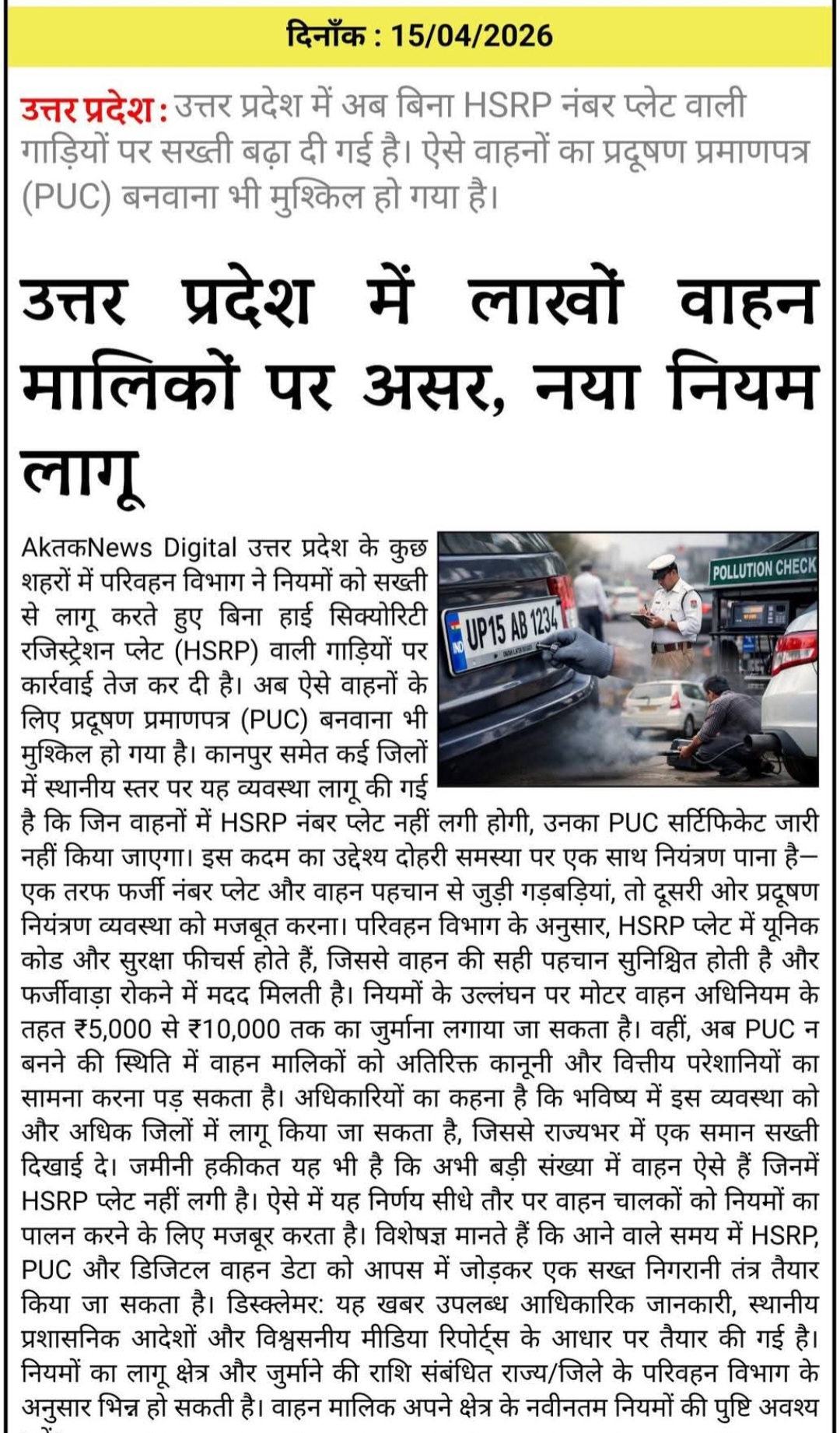 उत्तर प्रदेश में सख्ती: बिना HRC नंबर की गाड़ियां सड़क पर नहीं चलेंगी, मालिकों पर होगी कड़ी कार्रवाई