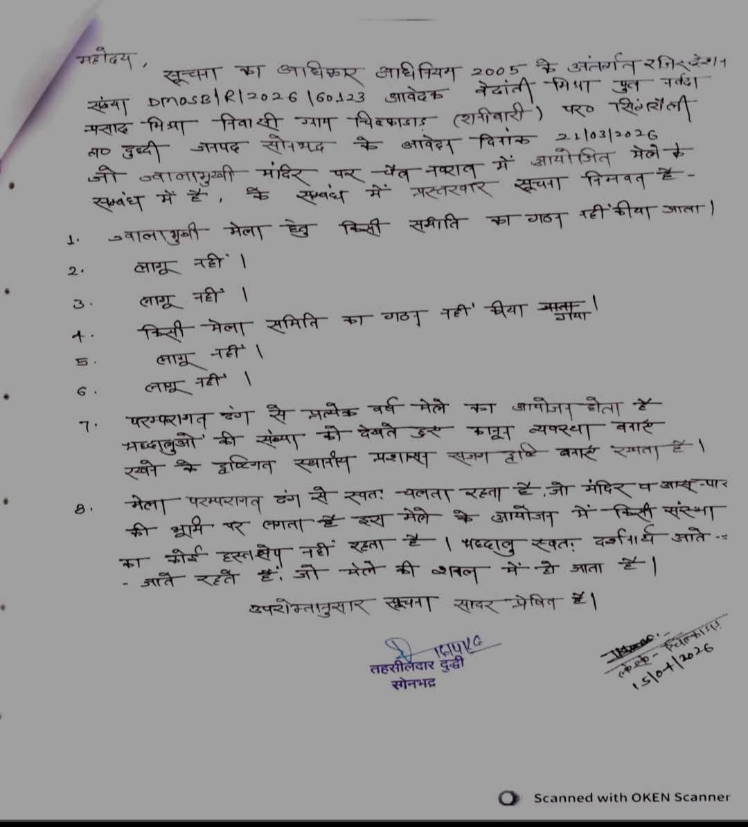 एसडीएम कार्यालय के जन सूचना अधिकारी (तहसीलदार) ने अपने पत्रांक-07/2026 दिनांक 16 अप्रैल 2026 के माध्यम से स्पष्ट किया है कि: