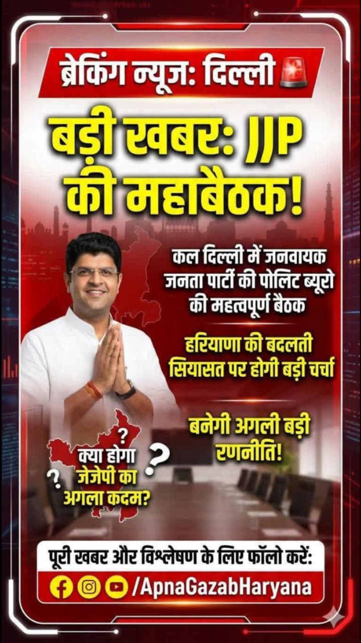 #JJP #DushyantChautala #DelhiNews #HaryanaPolitics #BreakingNews #ApnaGazabHaryana #PoliticalUpdate #JannayakJantaParty #HaryanaNews