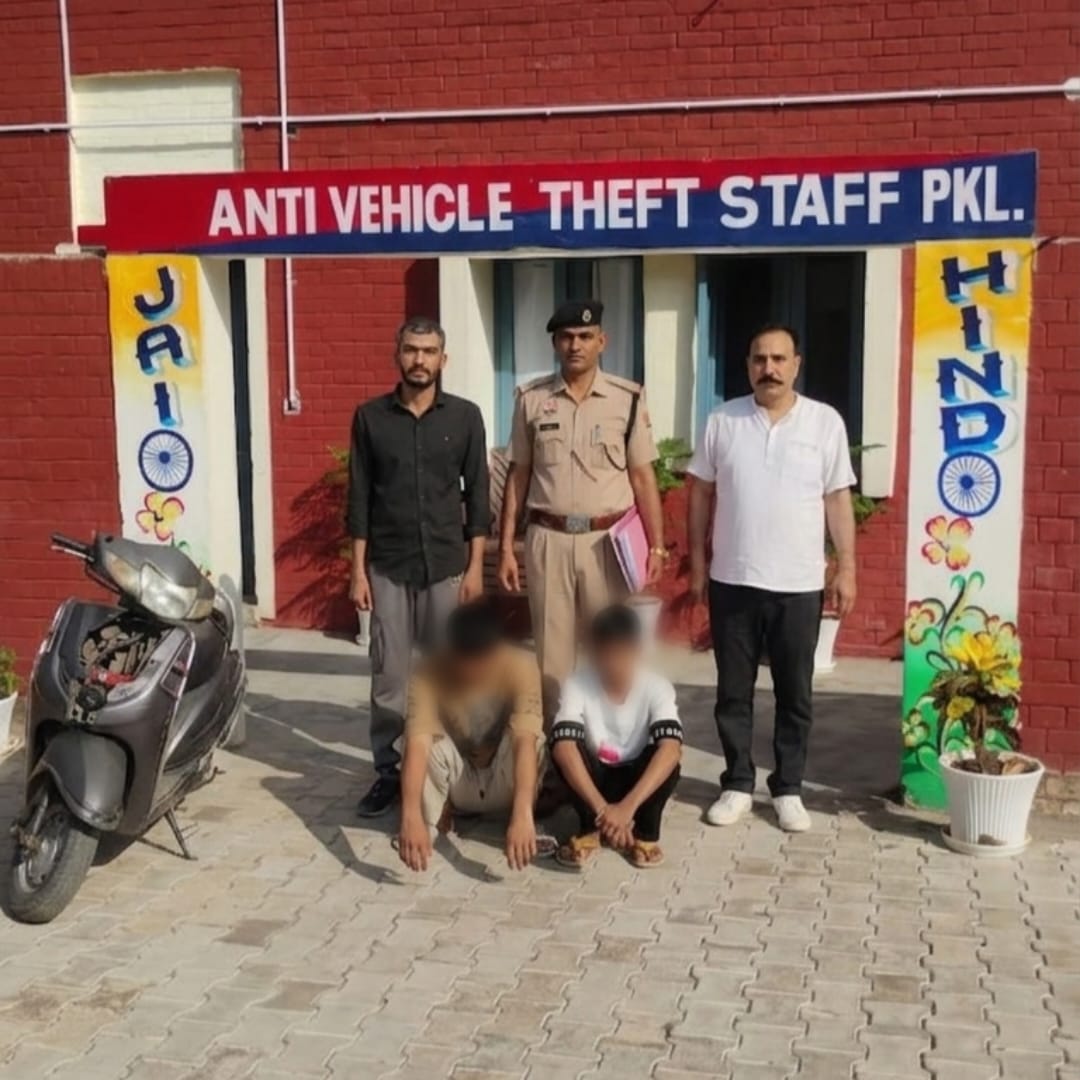 पंचकूला/19 अप्रैल :- पंचकूला पुलिस के एंटी व्हीकल थेफ्ट (AVT) स्टाफ टीम ने वाहन चोरी के मामले में कार्यवाही करते हुए दो आरोपियों को गिरफ्तार कर चोरीशुदा एक्टिवा स्कूटी बरामद करने में सफलता हासिल की है।