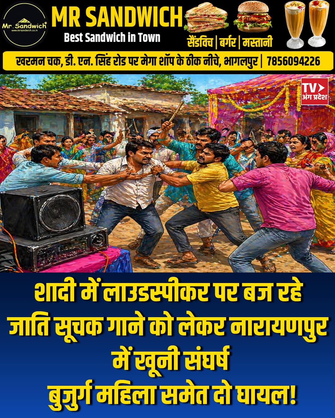 भागलपुर के नारायणपुर प्रखंड अंतर्गत बलाहा गांव में रविवार को 'मड़वा' की रस्म के दौरान लाउडस्पीकर पर जातिसूचक गाना बजाने को लेकर दो पक्षों में खूनी संघर्ष हो गया, जिससे शादी की खुशियां मातम में बदल गईं। विवाद तब शुरू हुआ जब पड़ोसियों ने गाने पर आपत्ति जताई और बहस देखते ही देखते मारपीट में तब्दील हो गई, जिसमें दूल्हे की दादी फूलन देवी और चाचा अभिषेक कुमार गंभीर रूप से घायल हो गए। घायलों का सामुदायिक स्वास्थ्य केंद्र में उपचार कराया गया है और फिलहाल गांव में व्याप्त तनाव के बीच सामाजिक स्तर पर पंचायत के जरिए मामले को सुलझाने का प्रयास किया जा रहा है।