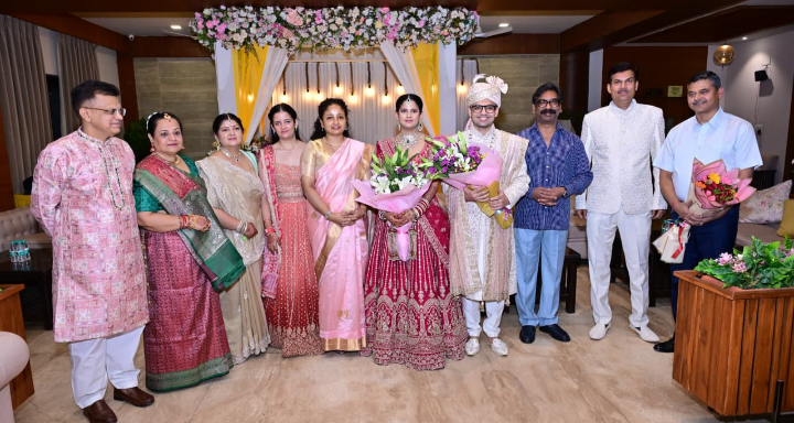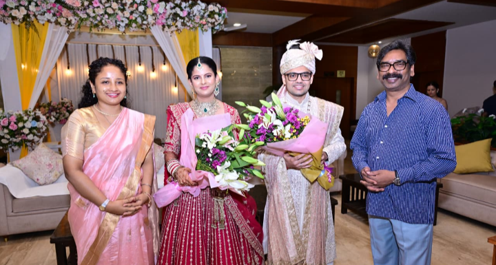 मुख्यमंत्री हेमन्त सोरेन दंपत्ति संग पहुंचे वैवाहिक समारोह में, DC राजीव रंजन की पुत्री को दिया आशीर्वाद
