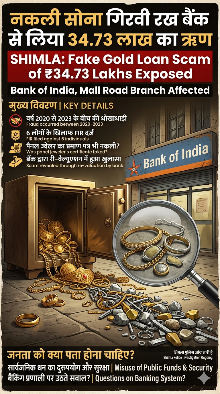 Himachal Shimla Loan of ₹34.73 Lakhs Secured from Bank by Pledging Fake Gold FIR Filed Against Six Individuals