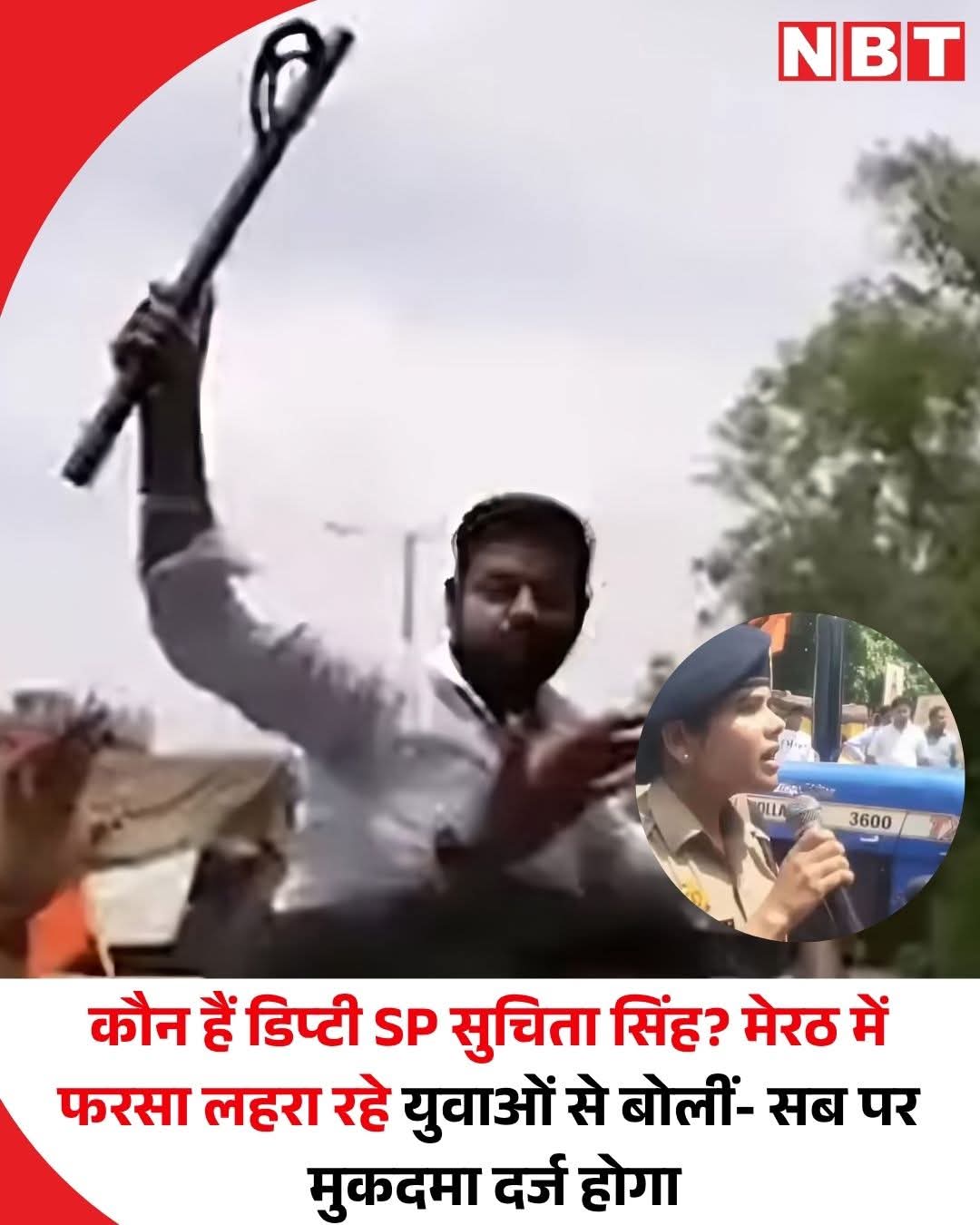 उत्तर प्रदेश के मेरठ में रविवार को परशुराम जयंती के अवसर पर जुलूस निकला। इस दौरान कई लोग फरसा और डंडा लहरा रहे थे। सुरक्षा व्यवस्था में तैनात डिप्टी एसपी शुचिता सिंह ने ऐसे लोगों को सख्त हिदायत दे डाली। उन्होंने चेतावनी दी- ये जो ऊपर बैठे हैं, फरसा लहरा रहे हैं, डंडा लिए हुए हैं, सबकी फोटोग्राफी हो रही है। ऐसे लोगों की पहचान कर उनके खिलाफ मुकदमा दर्ज किया जाएगा। इसका वीडियो भी इंटरनेट पर सामने आया है, जिसे शेयर करते हुए लोग तरह-तरह के कमेंट कर रहे हैं। परशुराम जयंती पर मेरठ जिले में शहर से देहात तक कई शोभायात्राओं और जुलूस का आयोजन हुआ। सीसीएसयू गेट से शौर्य यात्रा निकाली गई। इसमें कई युवक हाथों में डंडे और फरसे लेकर चल रहे थे। इनको देखकर डिप्टी एसपी शुचिता सिंह भड़क गईं। माइक हाथ में लेकर उन्होंने युवकों को फटकार लगाई। उन्होंने कहा- ये जो ऊपर बैठे हुए हैं, उन सब पर एफआईआर होगी। मैं अभी बता रही हूं। ये जो फरसा लहरा रहे हैं, डंडा लहरा रहे हैं, सबकी फोटोग्राफी हो रही है। इन सब पर मुकदमा लिखा जाएगा। जितने भी डंडे हैं अलग करिए। अलग कराओ।