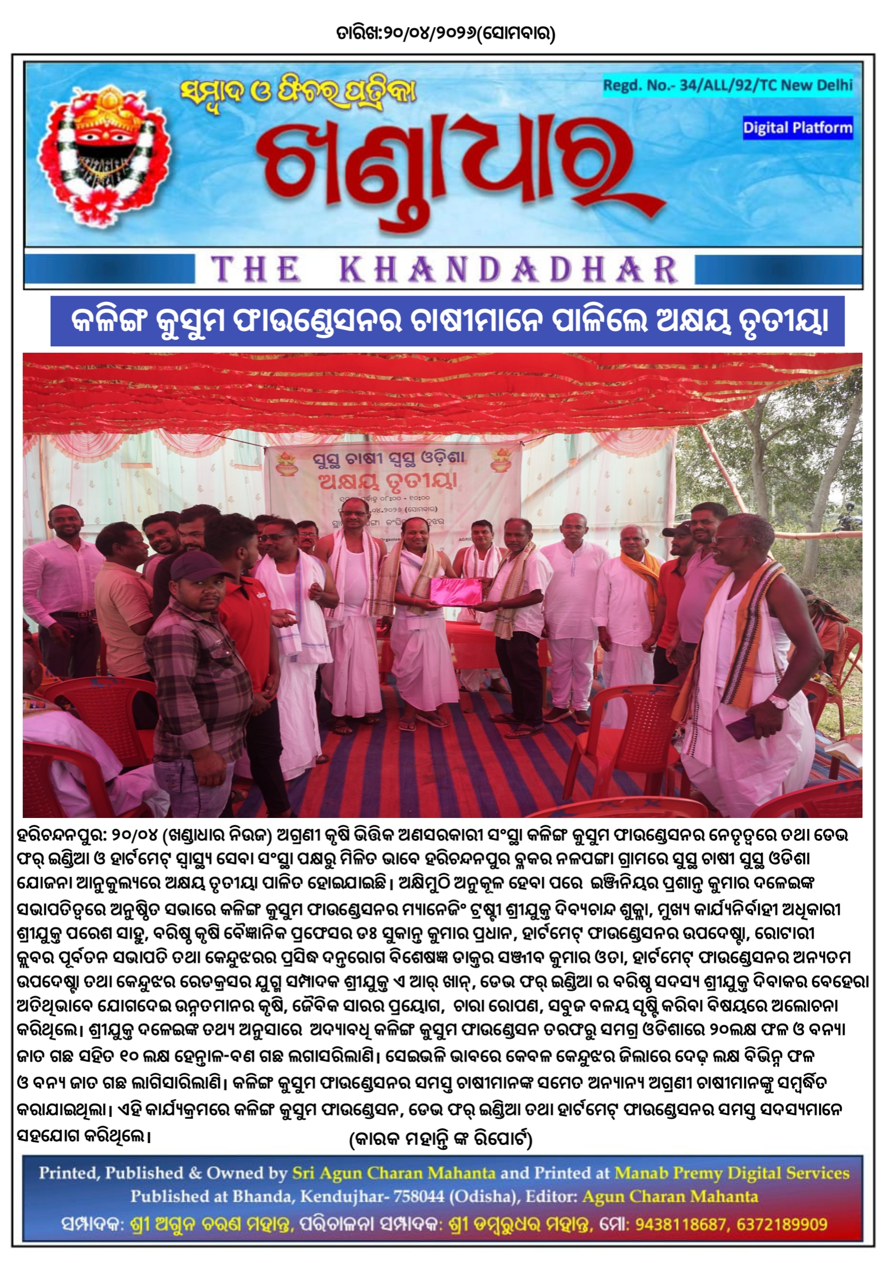 କଳିଙ୍ଗ କୁସୁମ ଫାଉଣ୍ଡେସନର ଚାଷୀମାନେ ପାଳିଲେ ଅକ୍ଷୟ ତୃତୀୟା।