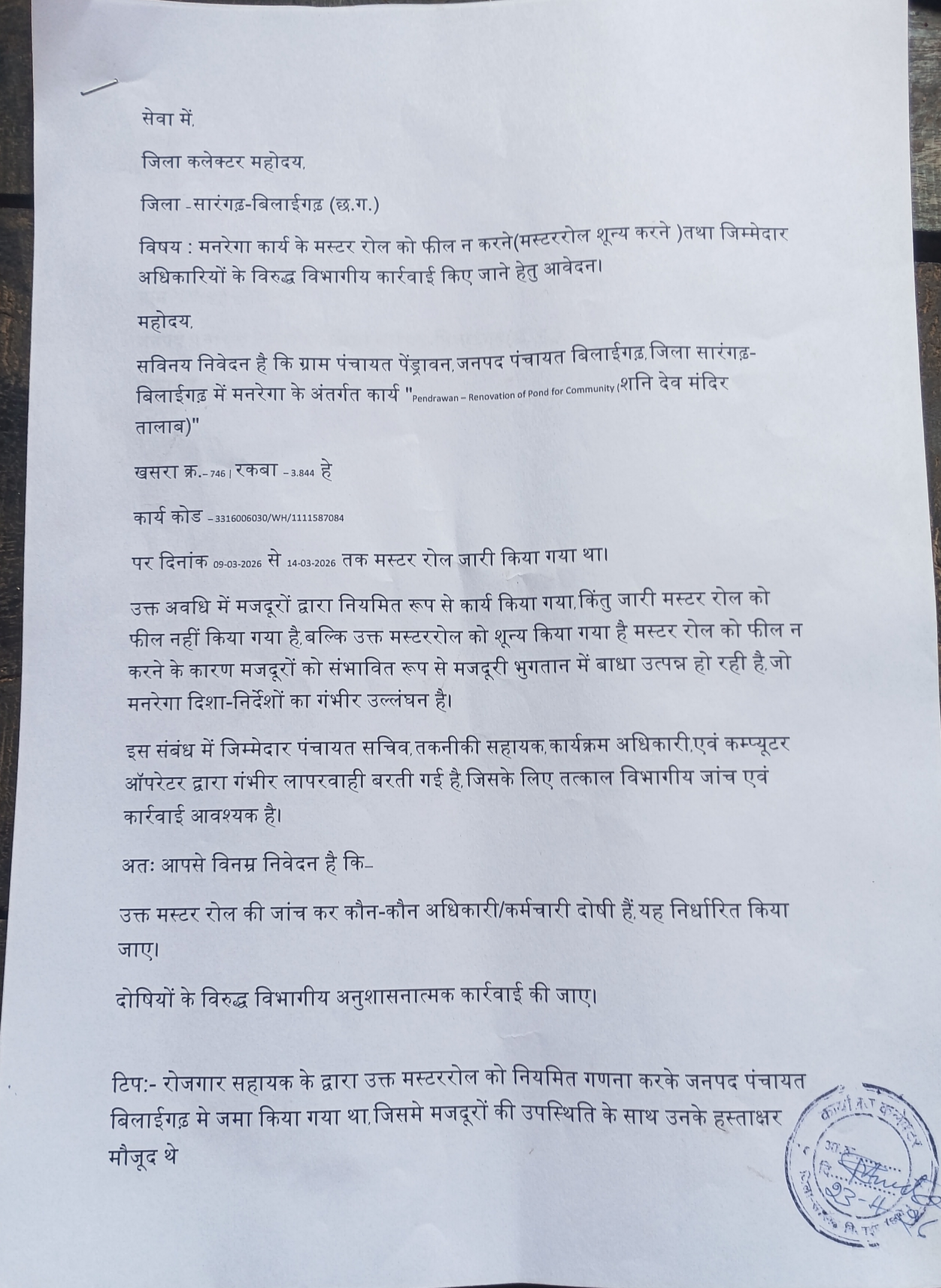 मस्टररोल शून्य किए जाने से मजदूरों का भुगतान रुक सकता है। ग्रामीणों ने इसे “मज़दूरी हड़पने की साजिश” तक बताया है और त्वरित कार्रवाई की मांग की है।