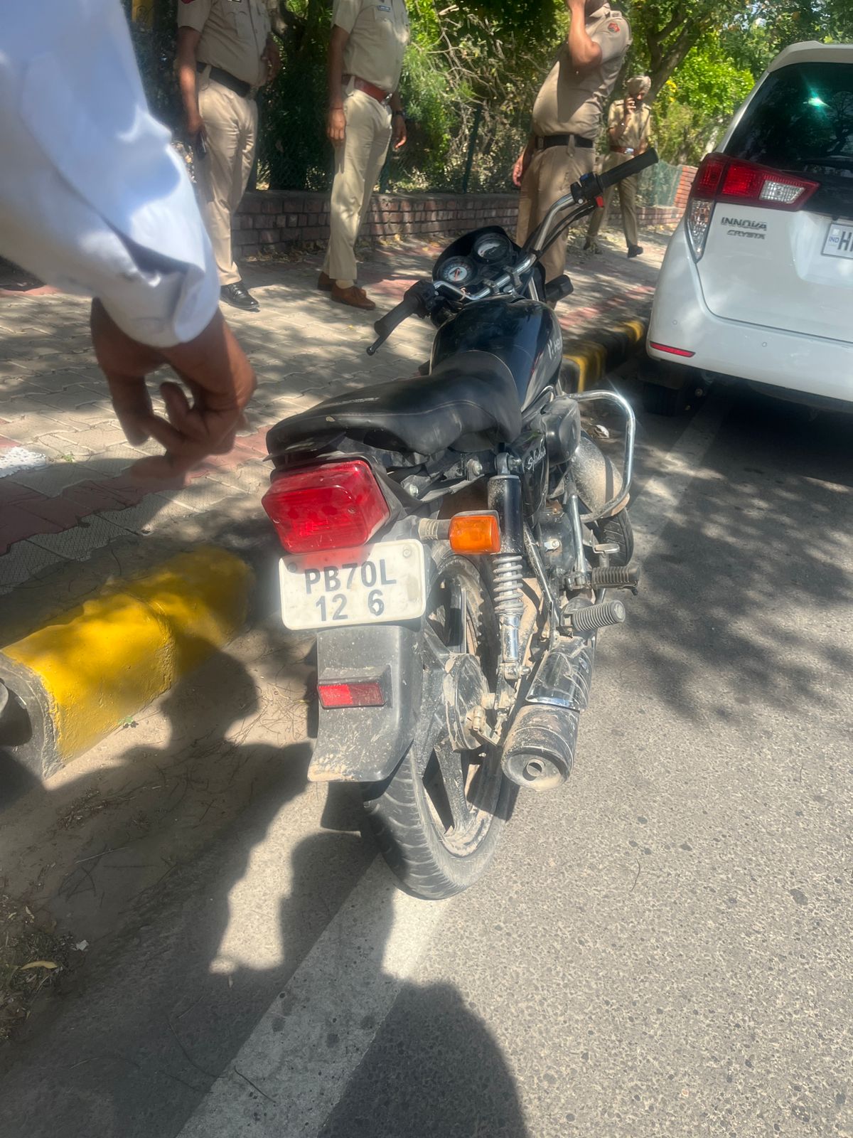 यह घटना दिनांक 22 अप्रैल, सेक्टर-1 स्थित मदर टेरेसा साकेत हॉस्पिटल के पास की है। डीसीपी क्राइम एंड ट्रैफिक अमरिंदर सिंह अपने निजी वाहन से वहां से गुजर रहे थे, तभी उनकी नजर एक बाइक पर पड़ी जिस पर तीन युवक सवार थे। गौर करने वाली बात यह थी कि बाइक की नंबर प्लेट के साथ छेड़छाड़ (टेमपर्ड) की गई थी ताकि उसकी पहचान छुपाई जा सके। डीसीपी ने तुरंत तत्परता दिखाते हुए बाइक को मौके पर ही रुकवा लिया। उन्होंने सिटी ट्रैफिक एसएचओ वरिंद्र कुमार को तुरंत घटनास्थल पर बुलाया। पुलिस टीम ने कार्रवाई करते हुए बाइक का 25 हजार रुपये का भारी-भरकम चालान काटा और वाहन को मौके पर ही इंपाउंड कर लिया।