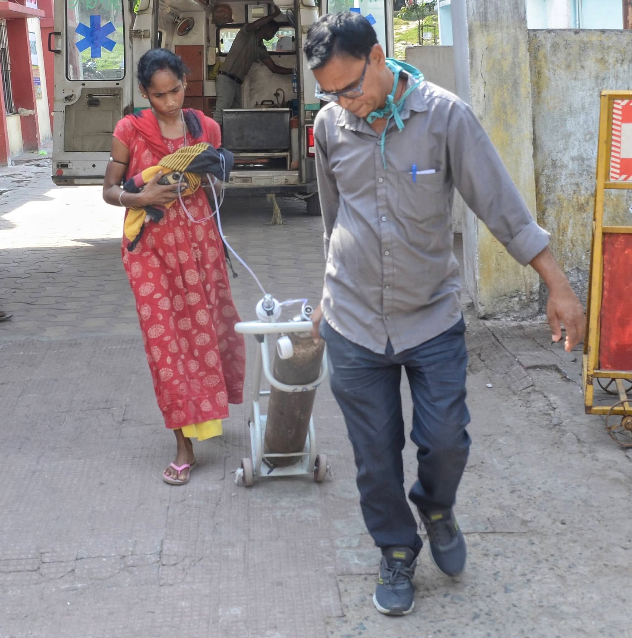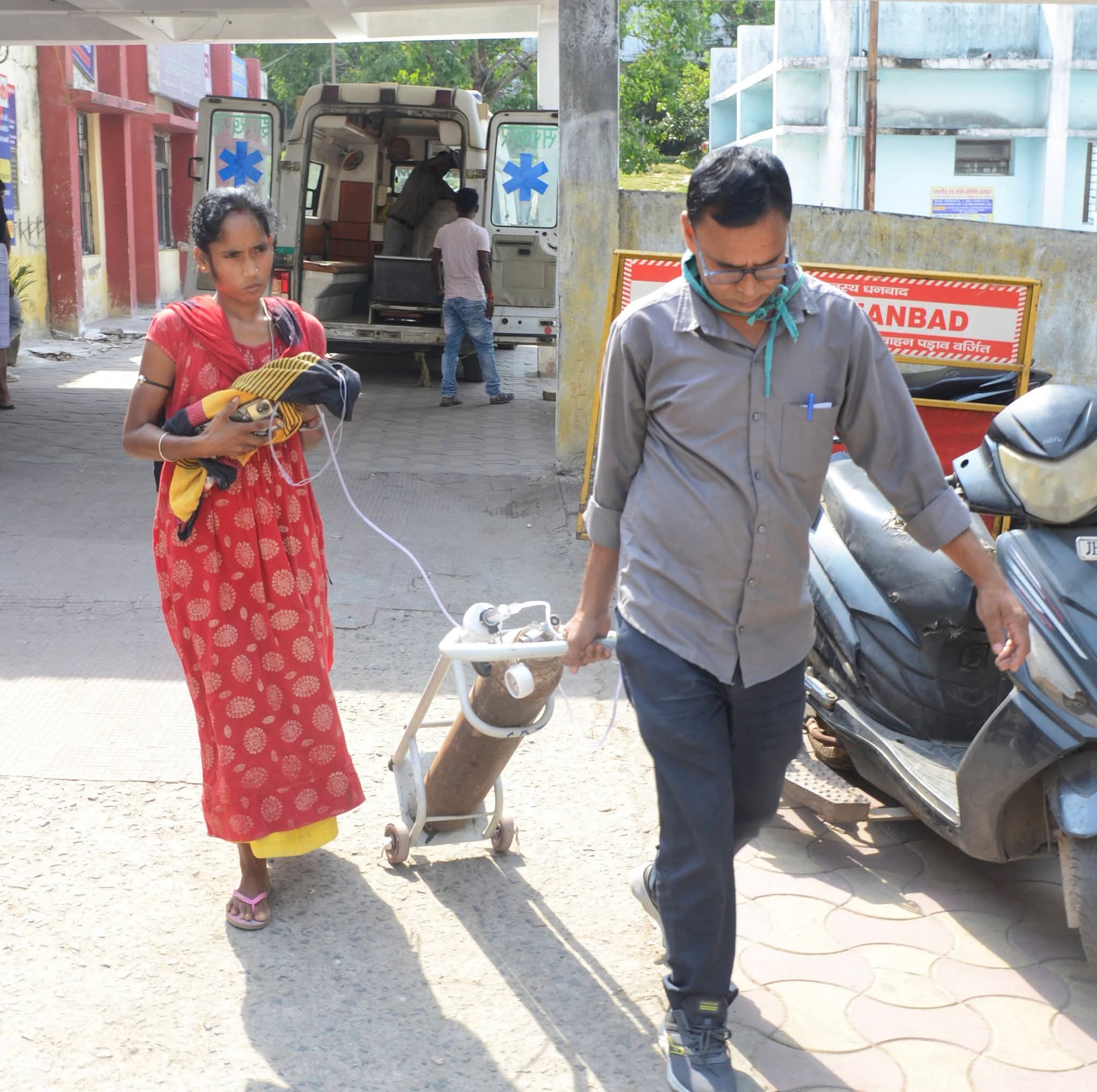 👉 साथ में भागते कर्मी, हाथ में ऑक्सीजन सिलिंडर
