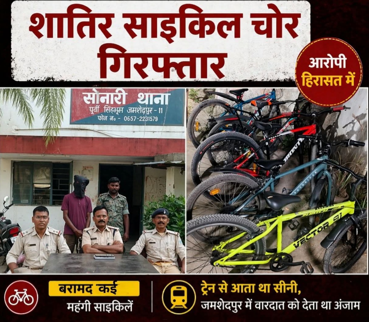 जमशेदपुर से एक राहत भरी खबर सामने आई है, जहां पुलिस ने लंबे समय से सक्रिय एक शातिर साइकिल चोर को आखिरकार गिरफ्तार कर लिया है। इस कार्रवाई को सोनारी थाना पुलिस ने अंजाम दिया, जिसके दौरान आरोपी के पास से चोरी की 5 साइकिलें बरामद की गई हैं।